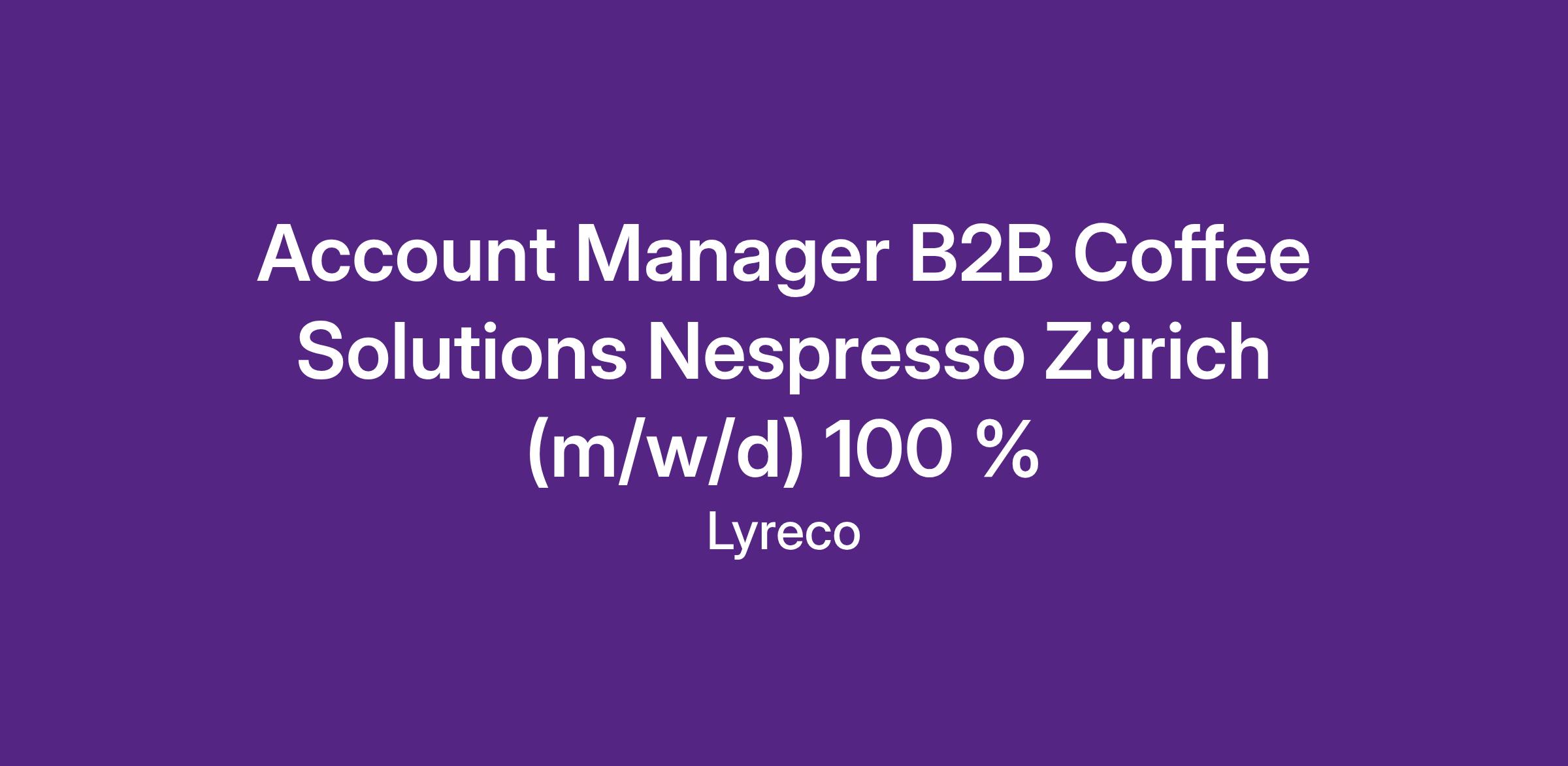 Account Manager B2B Coffee Solutions Nespresso Zürich (m/w/d) 100 %