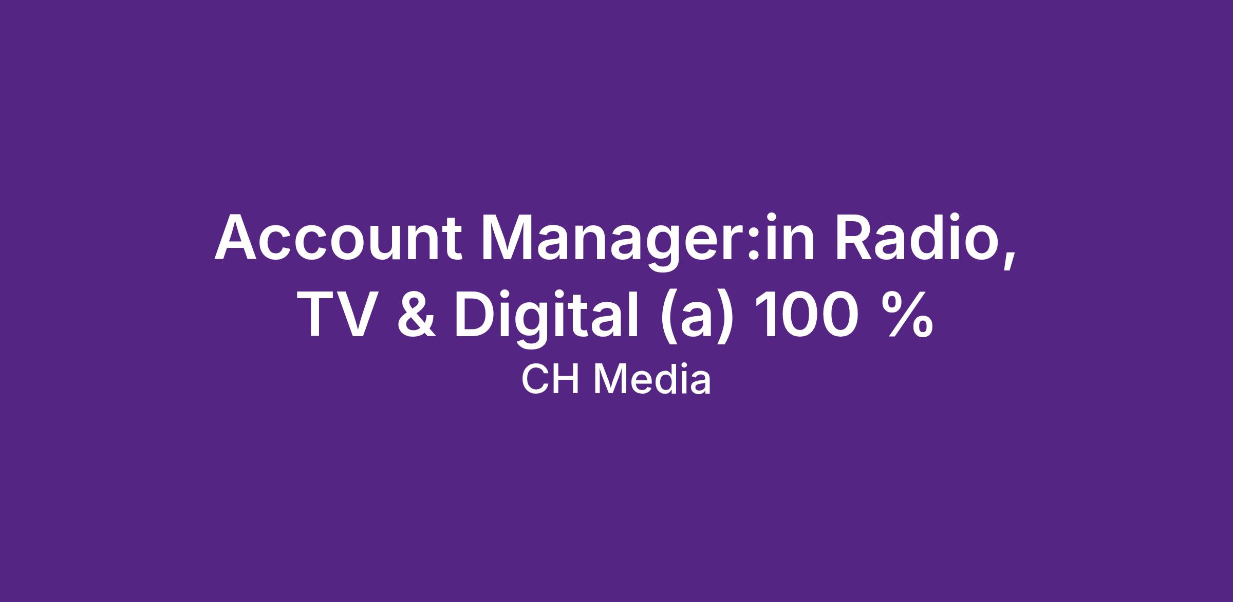 betreust und entwickelst du bestehende Kund:innen in den Bereichen Radio, TV und Digital (Schwerpunkt: Central, Pilatus, Sunshine, Eviva und Tele 1)