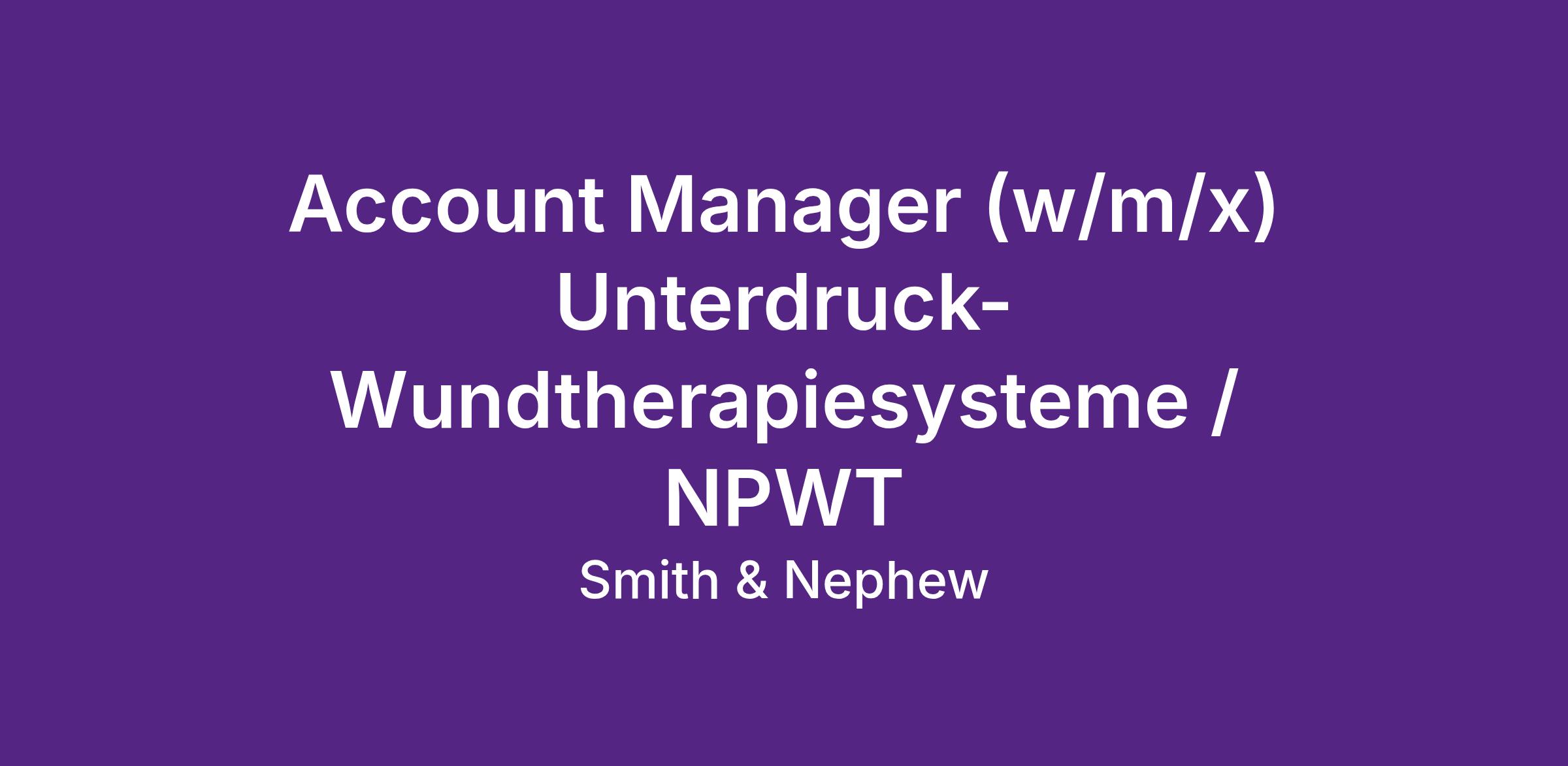 Als Account Manager (w/m/x) für den Bereich Advanced Wound Devices sind Sie verantwortlich für die Unterdruck-Wundtherapiesysteme / Negative Pressure Wound Therapy (NPWT) in Ihrer Region. Smith+Nephew ist in diesem Bereich einer der führenden Anbieter und bietet innovative Lösungen sowohl für Mehrweg- als auch kanisterlose Einwegsysteme an, sodass Patientinnen und Patienten auch Zuhause versorgt werden können. Sie betreuen daher neben den Spitälern auch die Kundengruppen im ambulanten Bereich und die Schnittstellen zwischen stationärer und ambulanter Versorgung (Überleitung). Gemeinsam mit Ihren Kunden erarbeiten Sie Lösungen, wie bspw. post-operative Wunden oder chronische Wunden optimal und wirtschaftlich versorgt sowie Wundheilungsstörungen vermieden werden können (Value Based Selling).