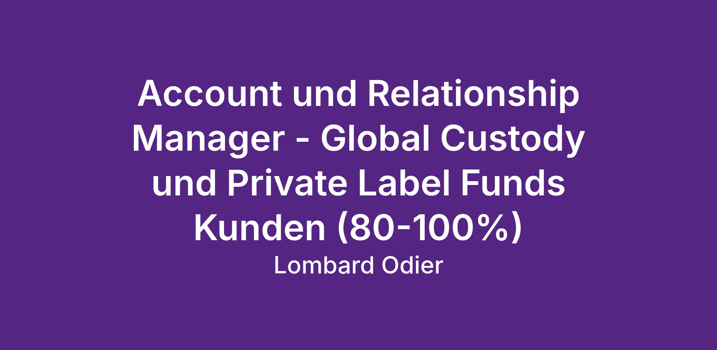 Account und Relationship Manager - Global Custody und Private Label Funds Kunden (80-100%)