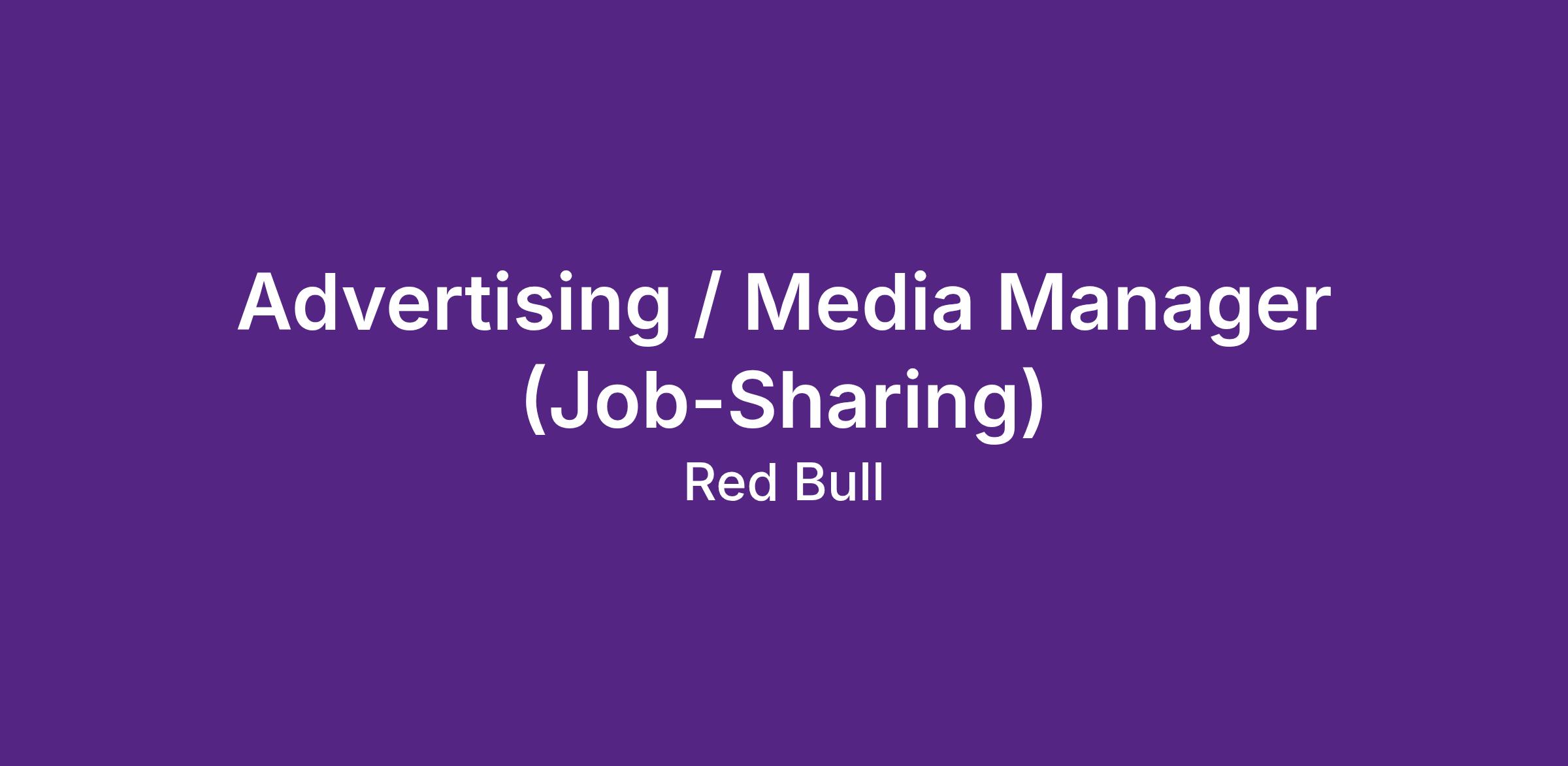 Du bist in der Media-Welt zuhause, analytisch sowie strategisch stark und inspiriert von den Aufgaben als Advertising / Media Manager? Dann haben wir den perfekten Job für dich: Gemeinsam mit deinem Job-Sharing Partner entwickelst du in einem Arbeitspensum von 50-60% inspirierende Werbekampagnen, die die Welt von Red Bull ins Rampenlicht rücken und die Marke bei der nächsten Generation von Schweizer Konsument:innen relevant halten.