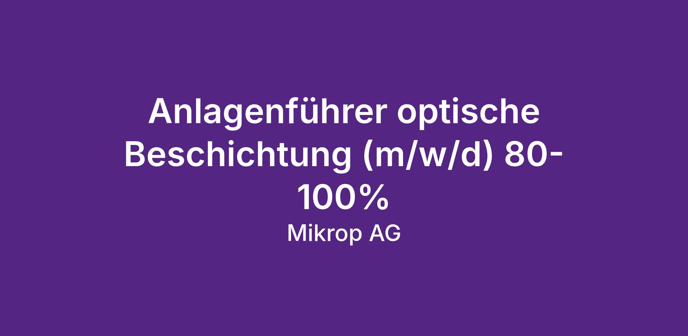 Anlagenführer optische Beschichtung (m/w/d) 80 - 100%
