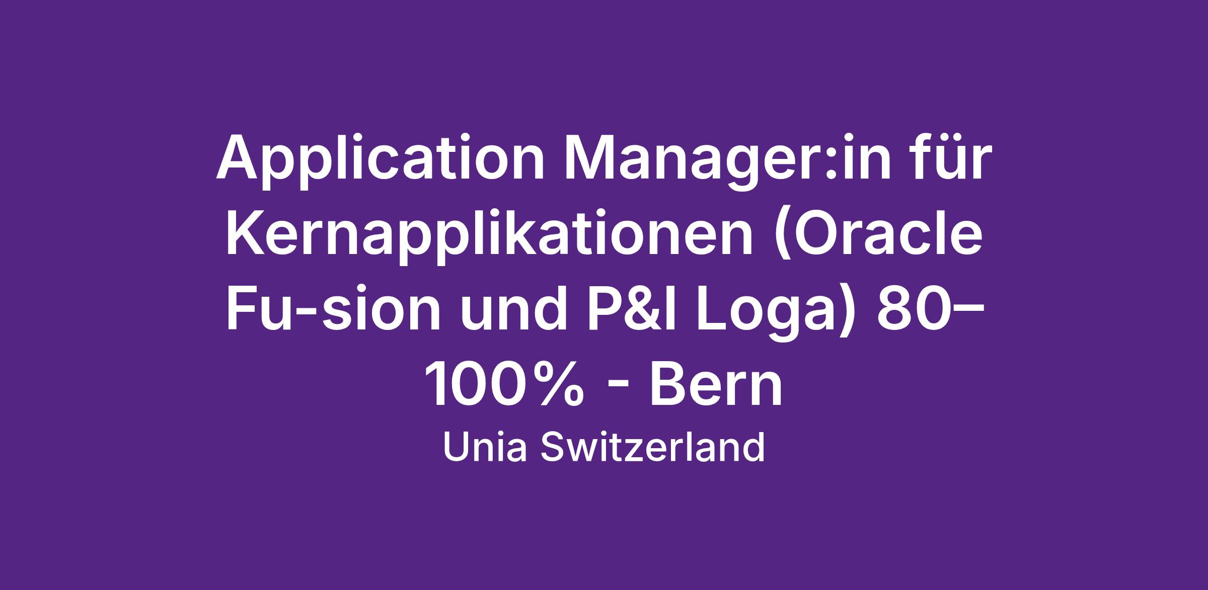 Application Manager:in für Kernapplikationen (Oracle Fusion und P&I Loga) 80–100%