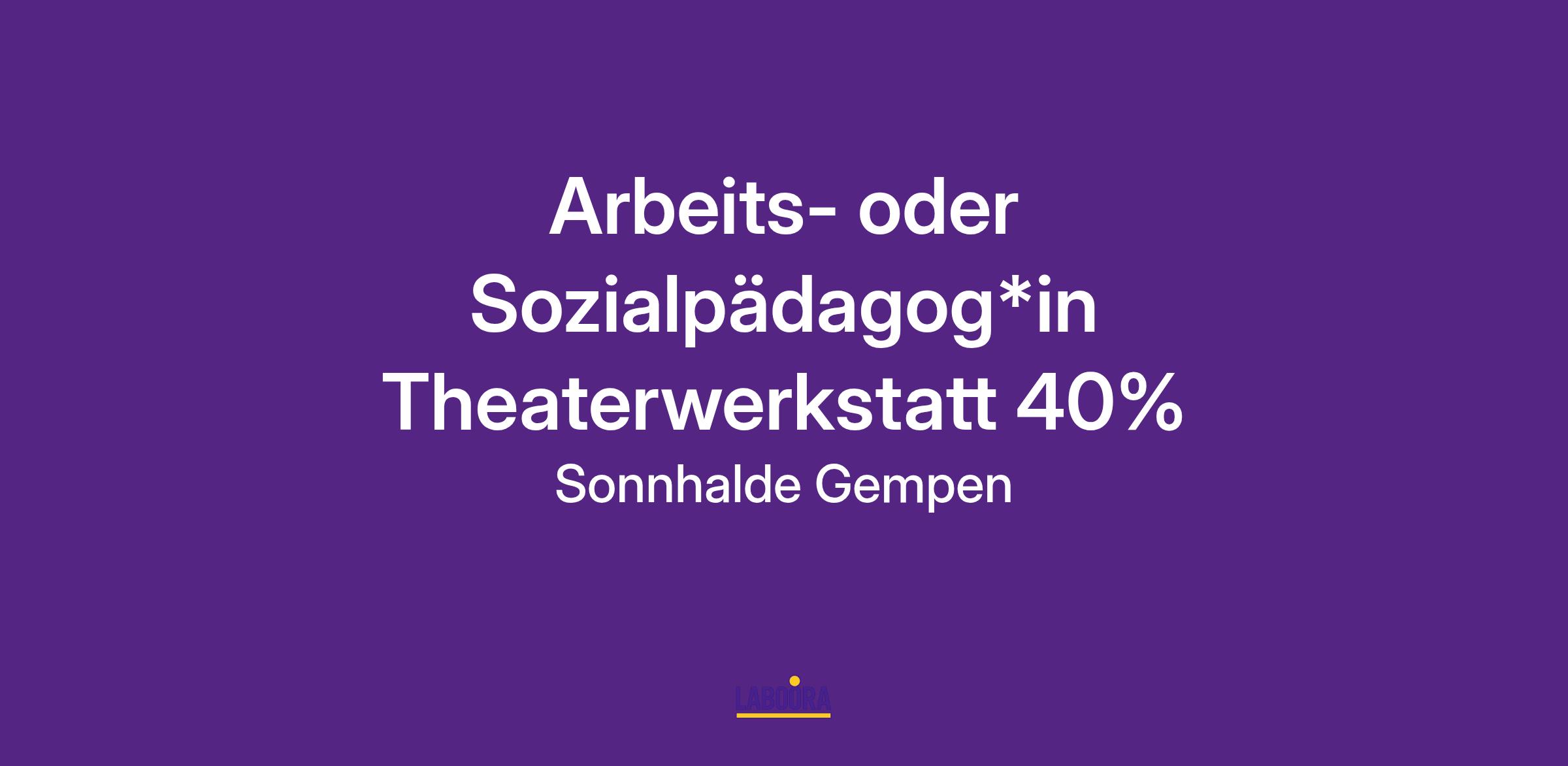 Die Theaterwerkstatt bietet Klientinnen und Klienten die Möglichkeit, über darstellende Kunst neue Ausdrucksformen, soziale Kompetenzen und Selbstwirksamkeit zu entwickeln. Du bist für die agogische Begleitung verantwortlich und arbeitest eng mit der Theaterpädagogin / dem Theaterpädagogen zusammen.
