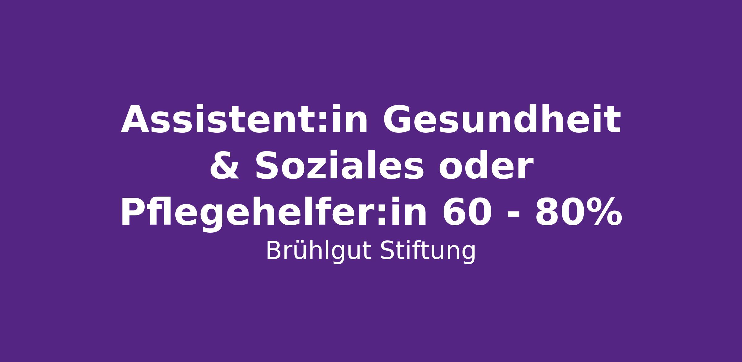 Assistent:in Gesundheit & Soziales oder Pflegehelfer:in 60 - 80%
