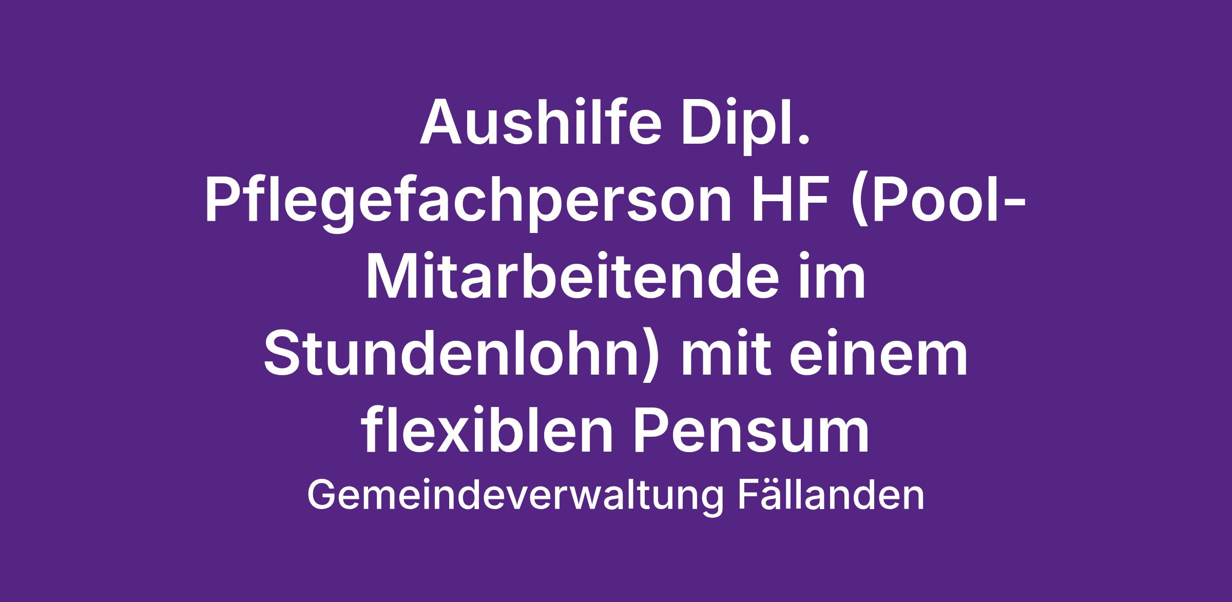 Aushilfe Dipl. Pflegefachperson HF (Pool-Mitarbeitende im Stundenlohn) mit einem flexiblen Pensum