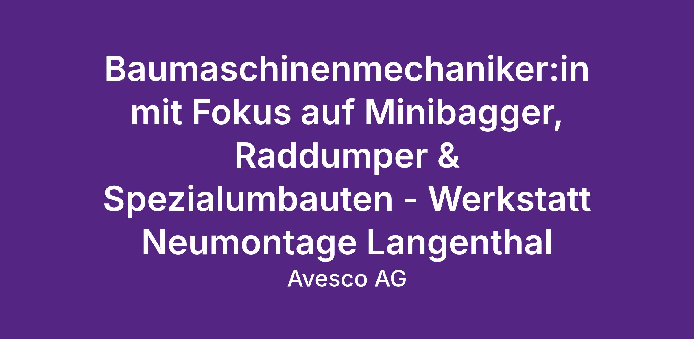 Baumaschinenmechaniker:in mit Fokus auf Minibagger, Raddumper & Spezialumbauten - Werkstatt Neumontage Langenthal