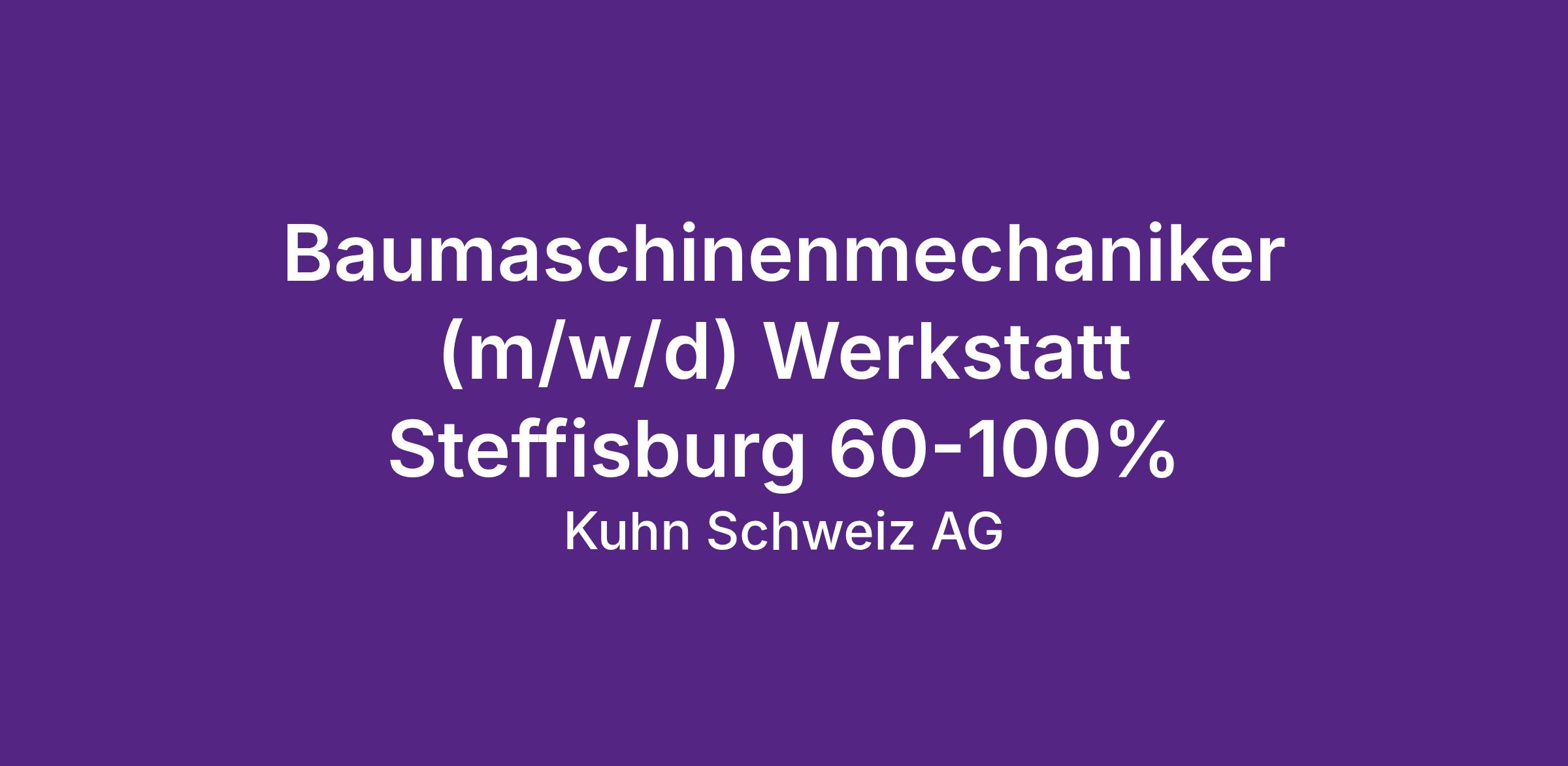 Die Kuhn Schweiz AG mit Sitz in Heimberg (BE) ist eine Tochtergesellschaft der europaweit operierenden KUHN Gruppe. Mit den Weltmarken KOMATSU, SENNEBOGEN, POWERSCREEN & SBM sind wir eines der führenden Baumaschinenunternehmen in der Schweiz. Wir zeichnen uns durch unser umfassendes, attraktives Produktportfolio sowie unsere kundenorientierte Service- und Dienstleistungsstruktur aus.