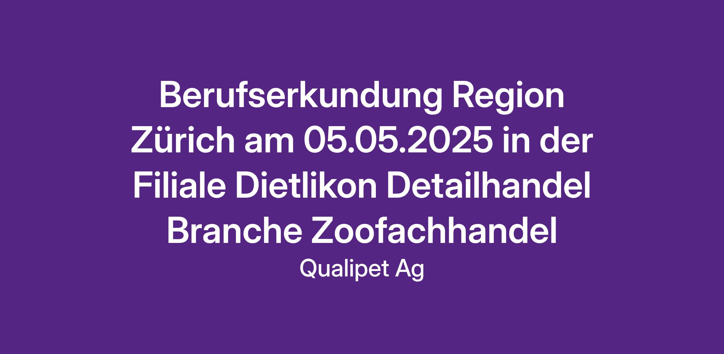 QUALIPET ist die Nummer 1 im Schweizer Zoofachhandel mit über 80 Filialen und dem Hauptsitz in Dietlikon, beschäftigt über 800 Mitarbeitende, rund 100 davon in Ausbildung. QUALIPET bietet das grösste Haustierbedarf-Sortiment in der Schweiz an, welches in den Filialen und im Onlineshop erhältlich ist. Neben hochwertiger Nahrung für alle gängigen Haustiere, bietet QUALIPET auch ein umfangreiches Sortiment an Zubehör und Accessoire für Haustiere an. Als Schweizer Familienunternehmen steht QUALIPET für eine artgerechte Haltung von Tieren, für Beständigkeit und Qualität. Dabei stehen die Haustiere, die Kundschaft und die Mitarbeitenden gleichermassen im Mittelpunkt des Interesses.