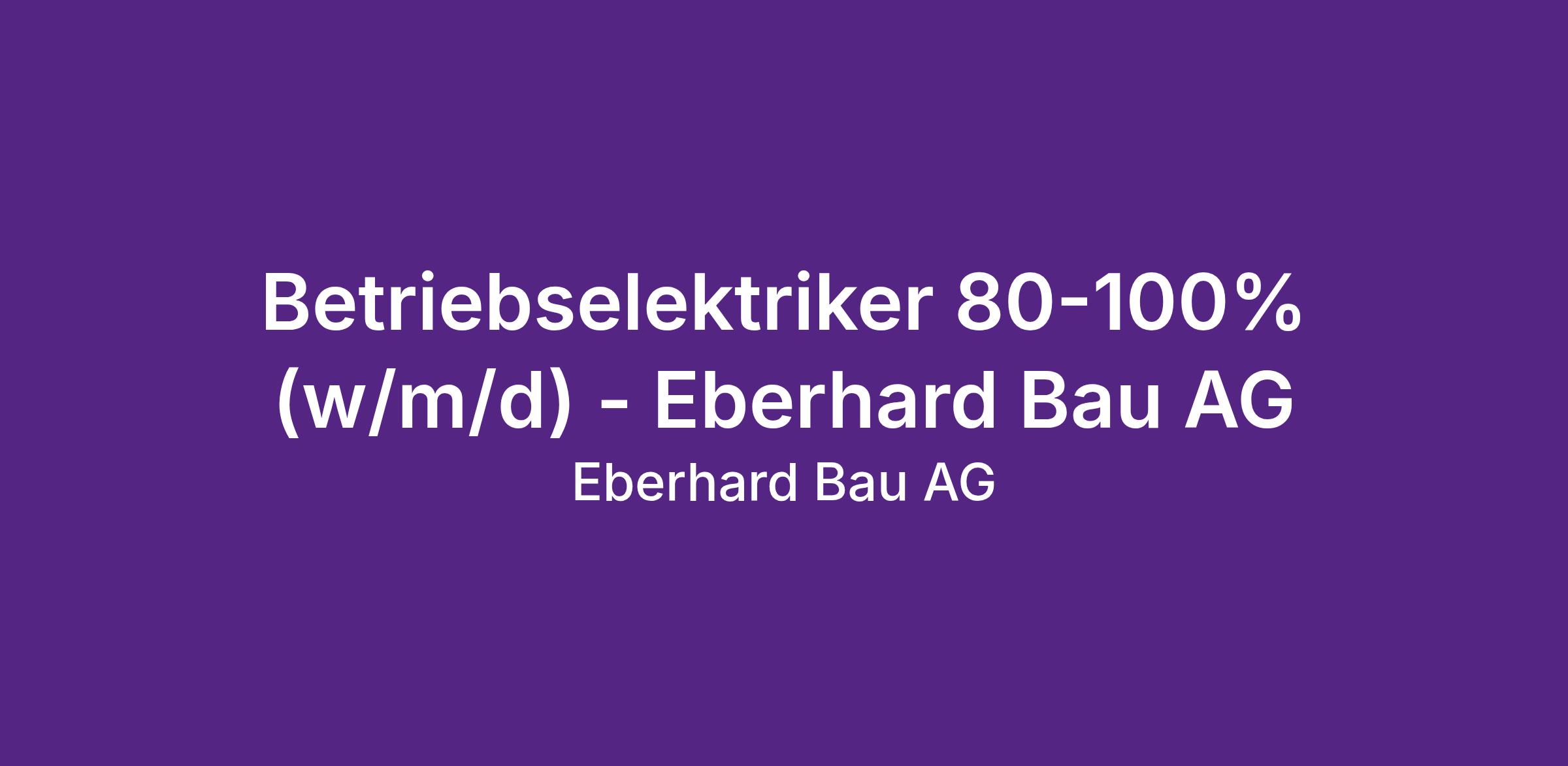 Betriebselektriker 80-100% (w/m/d) - Eberhard Bau AG