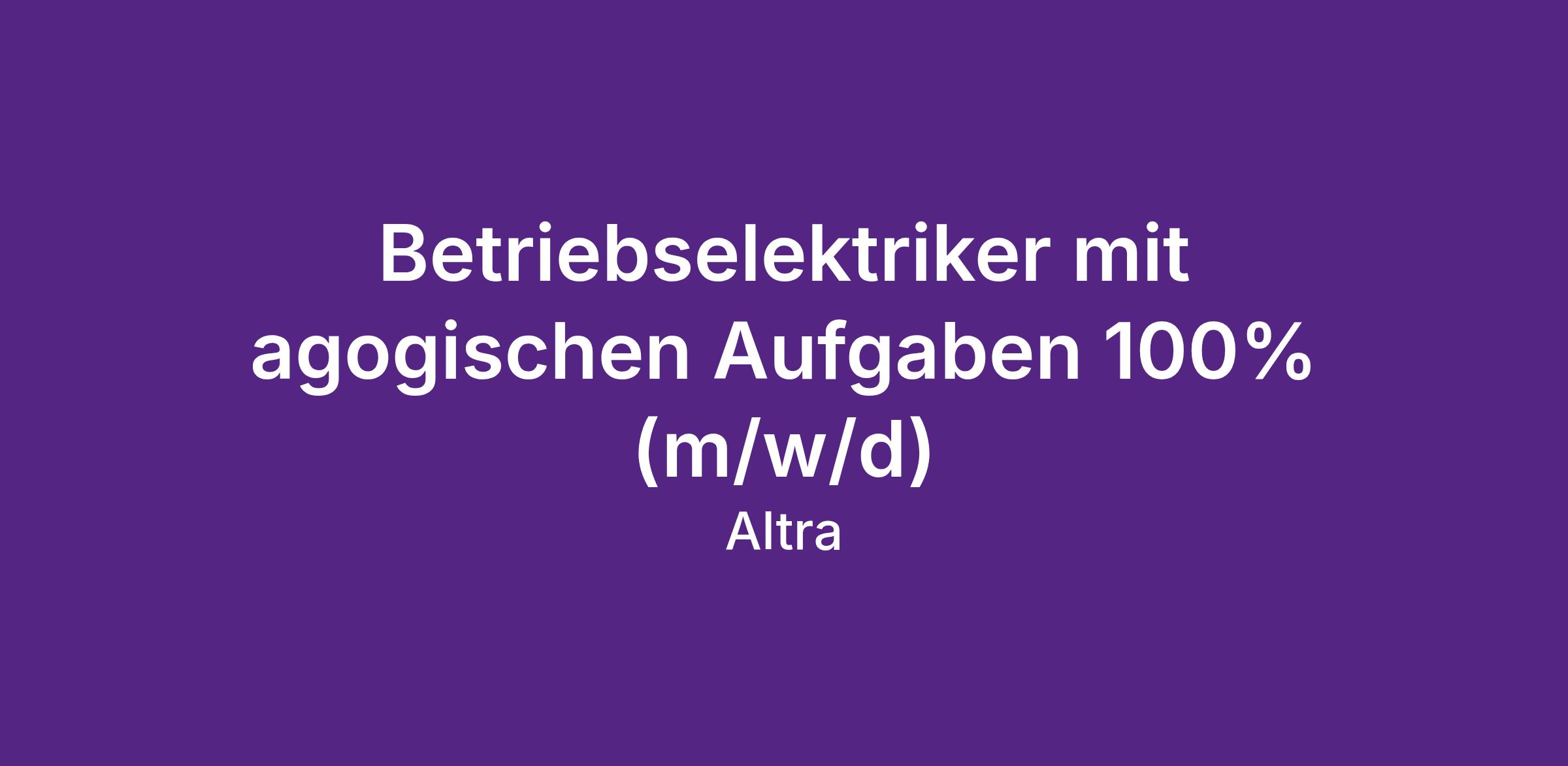 Betriebselektriker mit agogischen Aufgaben 100% (m/w/d)