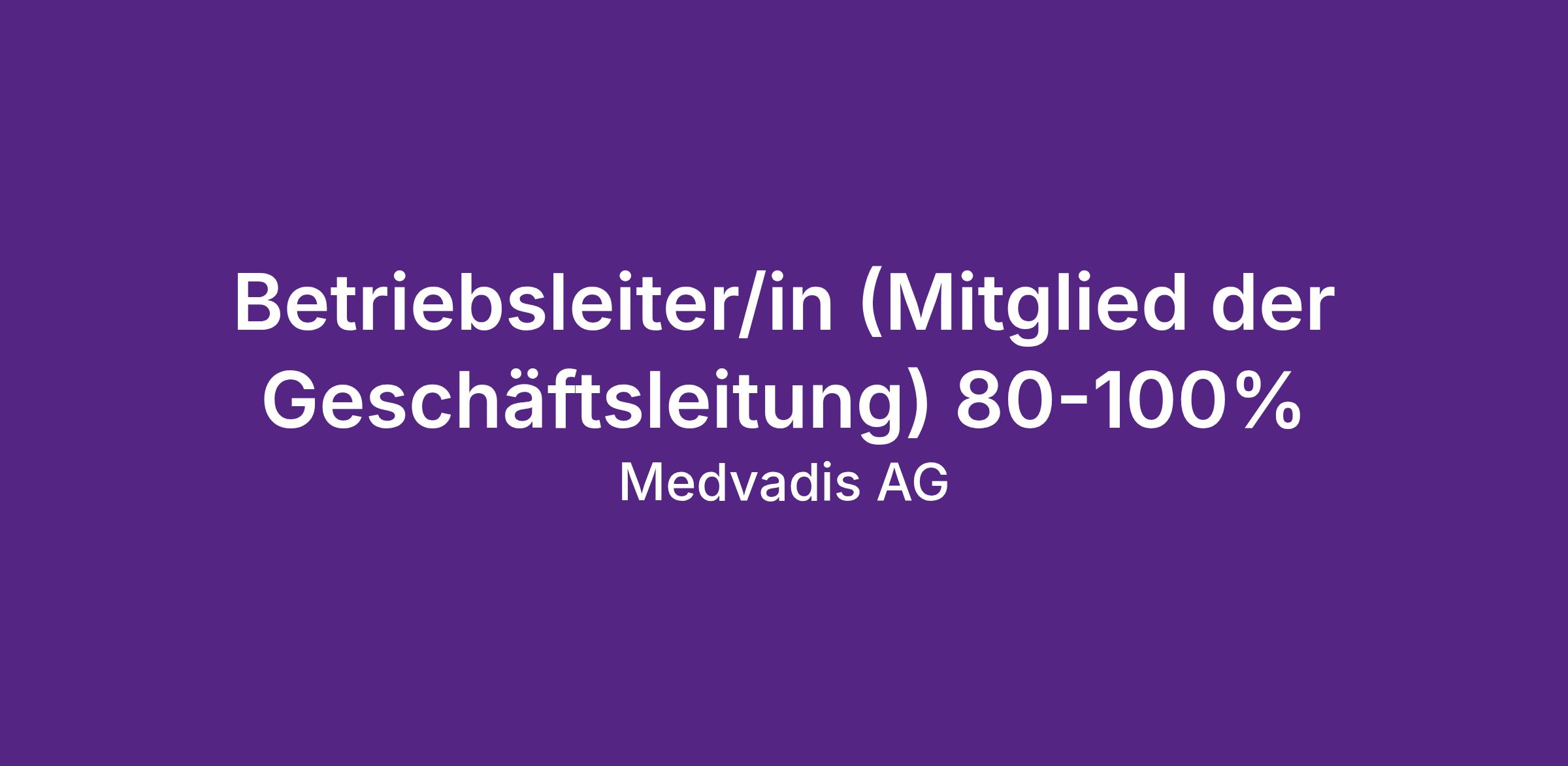 Die Medvadis AG betreibt fünf moderne Ärztezentren in Urdorf, Dietikon, Schlieren, Birmensdorf und Engstringen. Als Betriebsleitung suchen wir eine unternehmerisch denkende, führungsstarke Persönlichkeit, die den operativen Betrieb unserer Standorte mitprägt und weiterentwickelt. In der Geschäftsleitung übernehmen Sie Mitverantwortung für die strategischen Themen und deren Umsetzung.