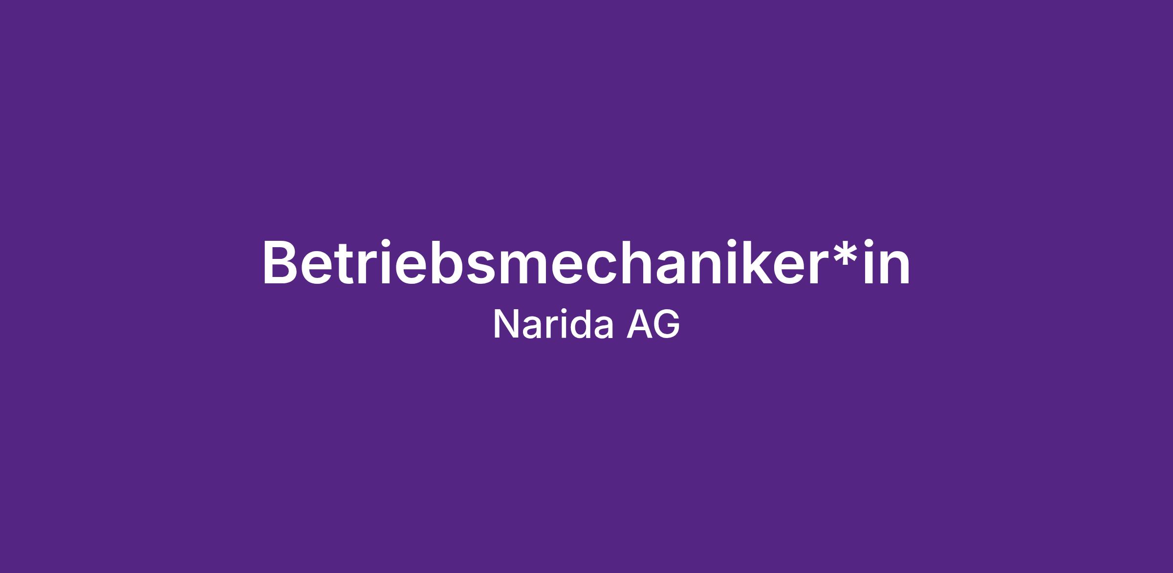 In unserem Produktionswerk NARIDA AG in Lanzenhäusern produzieren wir bekannte Getreideriegel und Snacks für das In- und Ausland. Wir suchen per sofort oder nach Vereinbarung eine*n Betriebsmechaniker*in 100%.