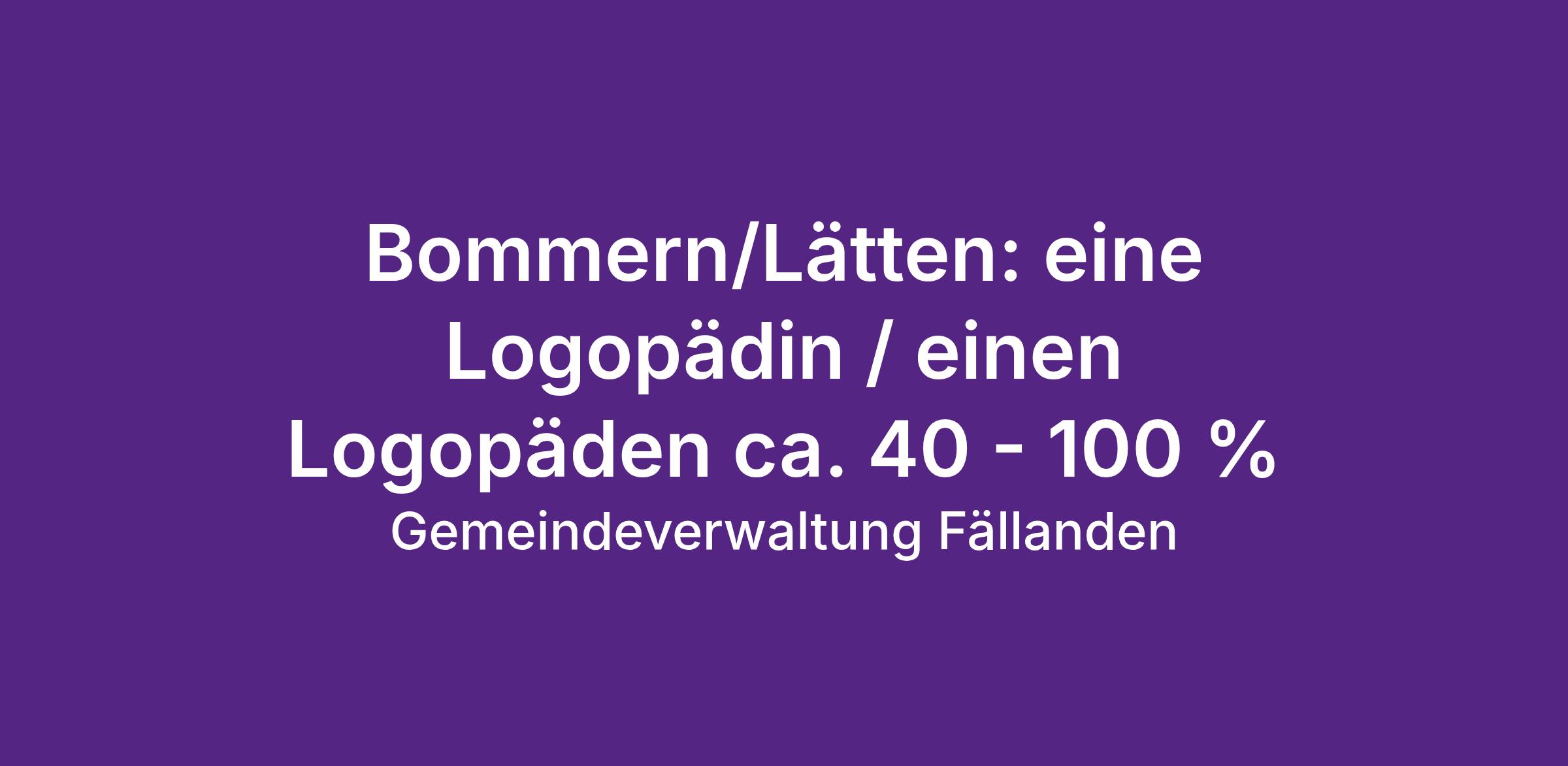 Bommern/Lätten: eine Logopädin / einen Logopäden ca. 40 - 100 %