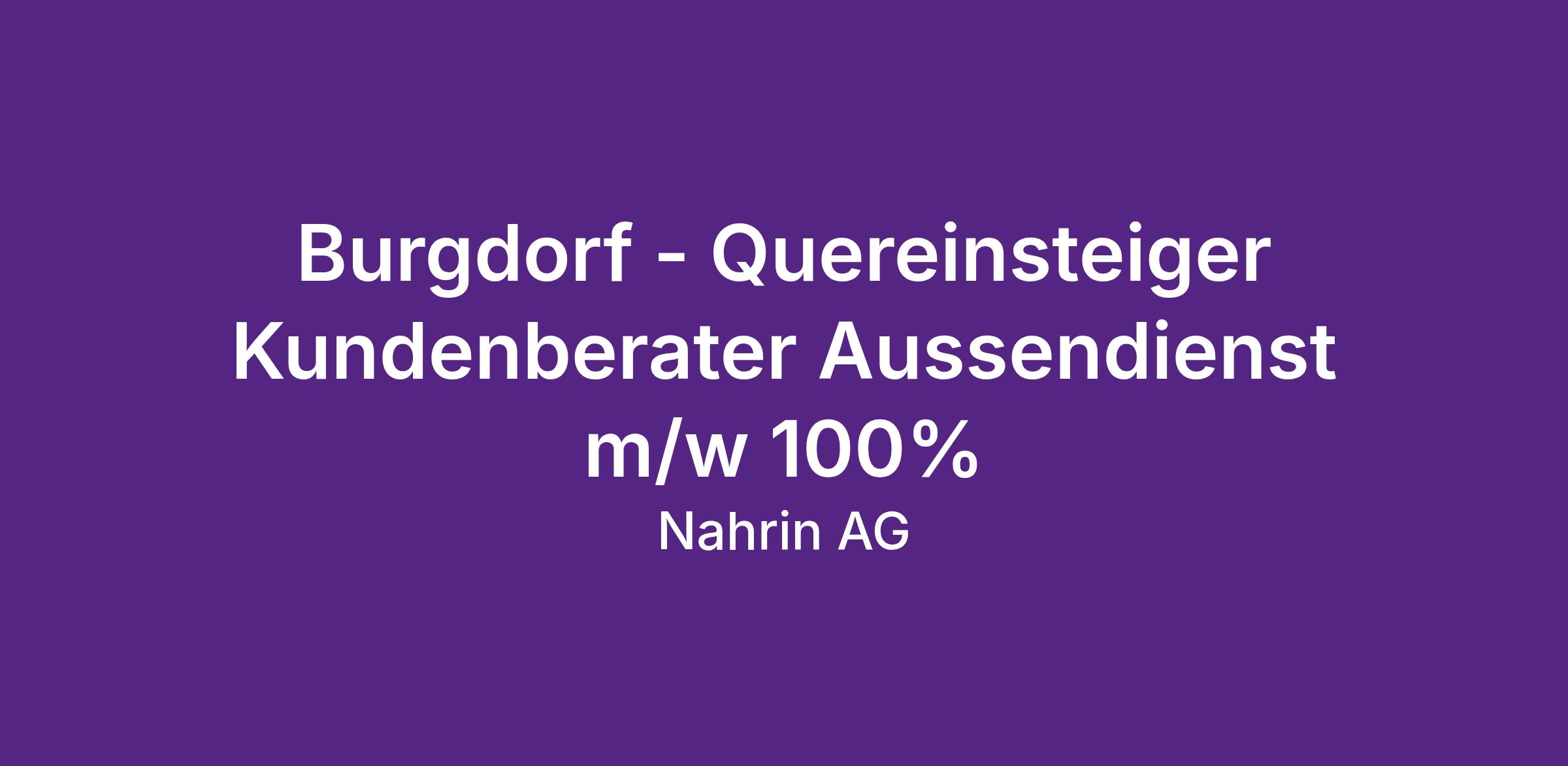 Burgdorf - Quereinsteiger Kundenberater Aussendienst m/w 100%