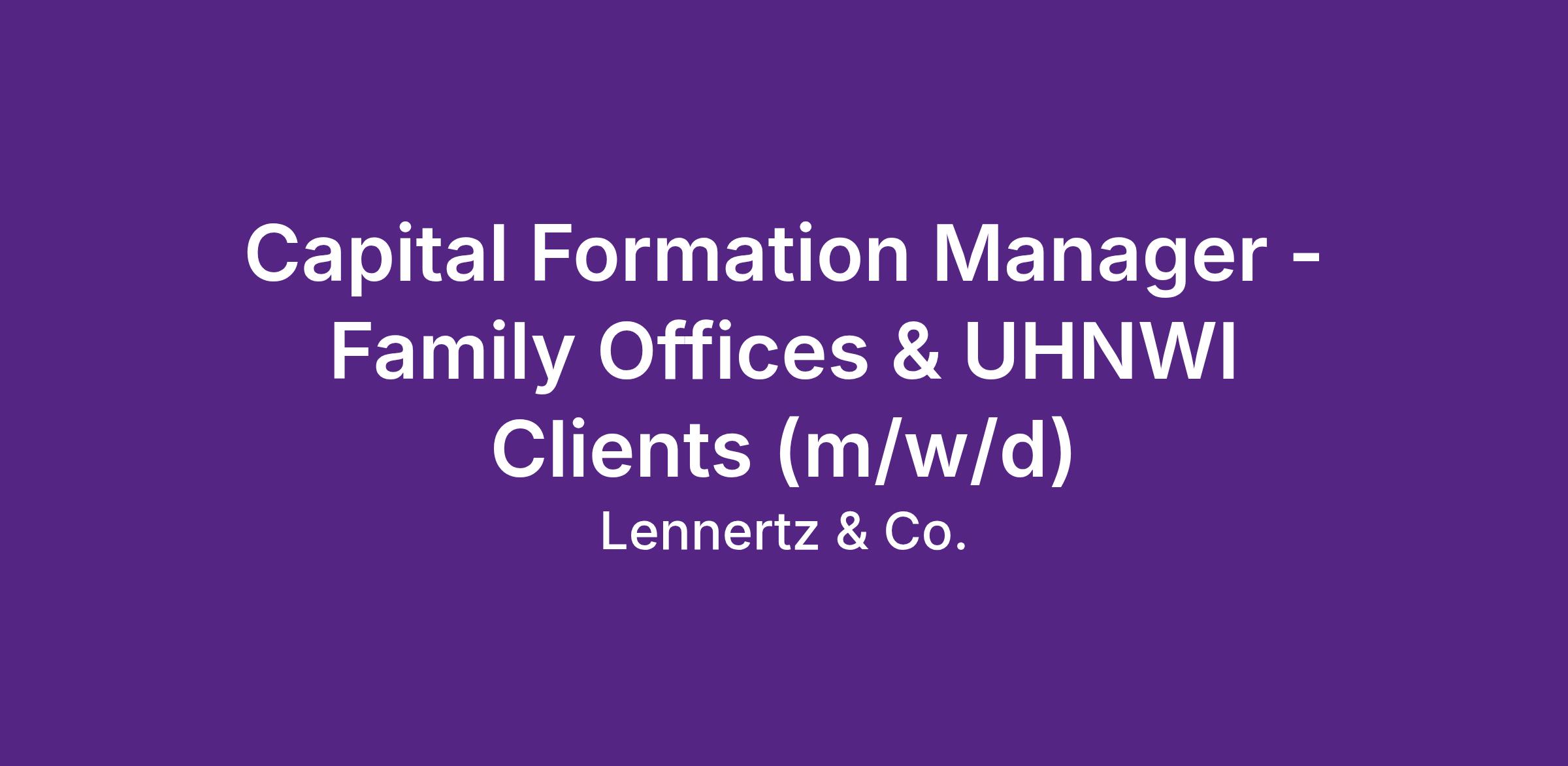 - Langjährige relevante Erfahrung im Capital Formation, Investor Relations, Wealth Management, Family Office oder Vertrieb anspruchsvoller Finanzprodukte
