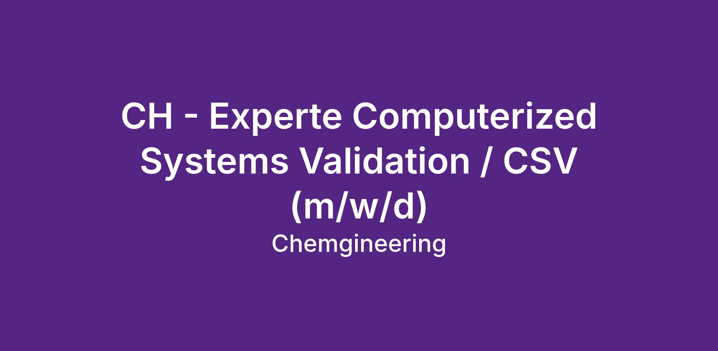 CH - Experte Computerized Systems Validation / CSV (m/w/d)