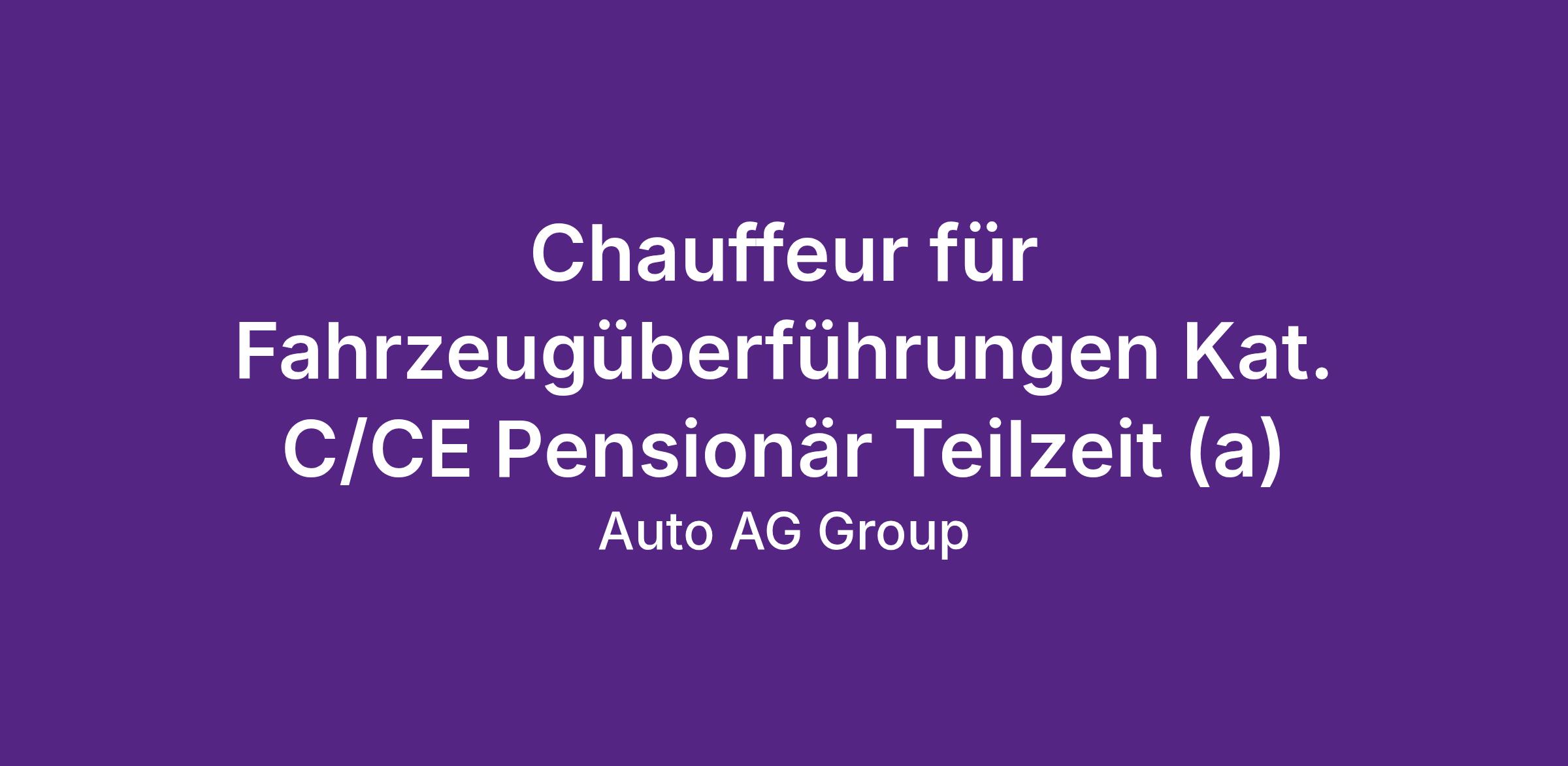 Zur Unterstützung unseres Verkaufsteams suchen wir ab 01. November 2026 in Rothenburg LU einen aktiven Pensionär, der sich eine zusätzliche Beschäftigung sucht und gerne unterwegs ist. Nach Auftrag überführst du Fahrzeuge aller Art und lenkst diese routiniert zum Bestimmungsort. Den Hin- oder Rückweg meisterst du mit den öffentlichen Verkehrsmitteln, dazu erhältst du von uns ein kostenloses GA-Senior.