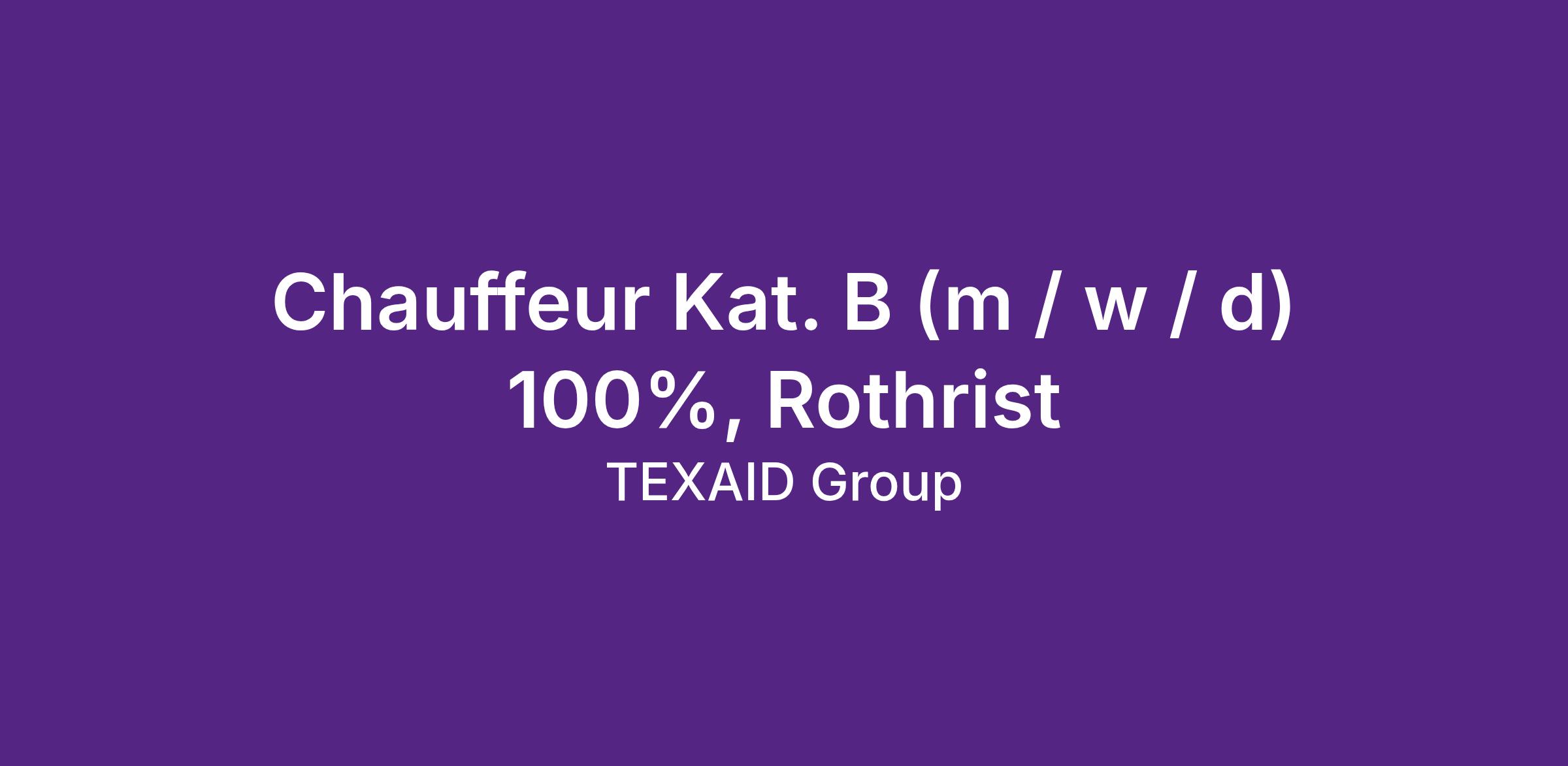 Chauffeur Kat. B (m / w / d) 100%, Rothrist