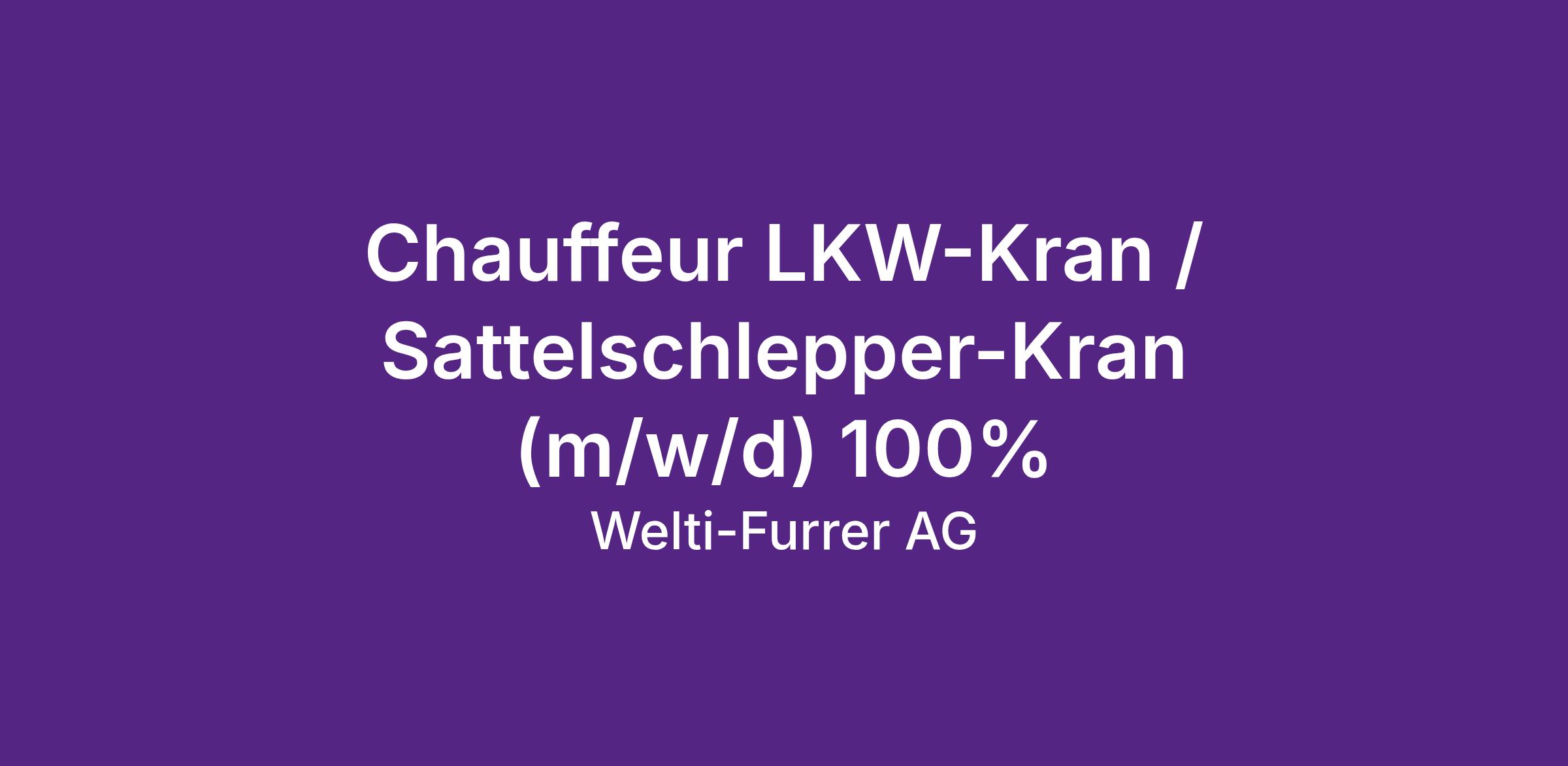 Chauffeur LKW-Kran / Sattelschlepper-Kran (m/w/d) 100%