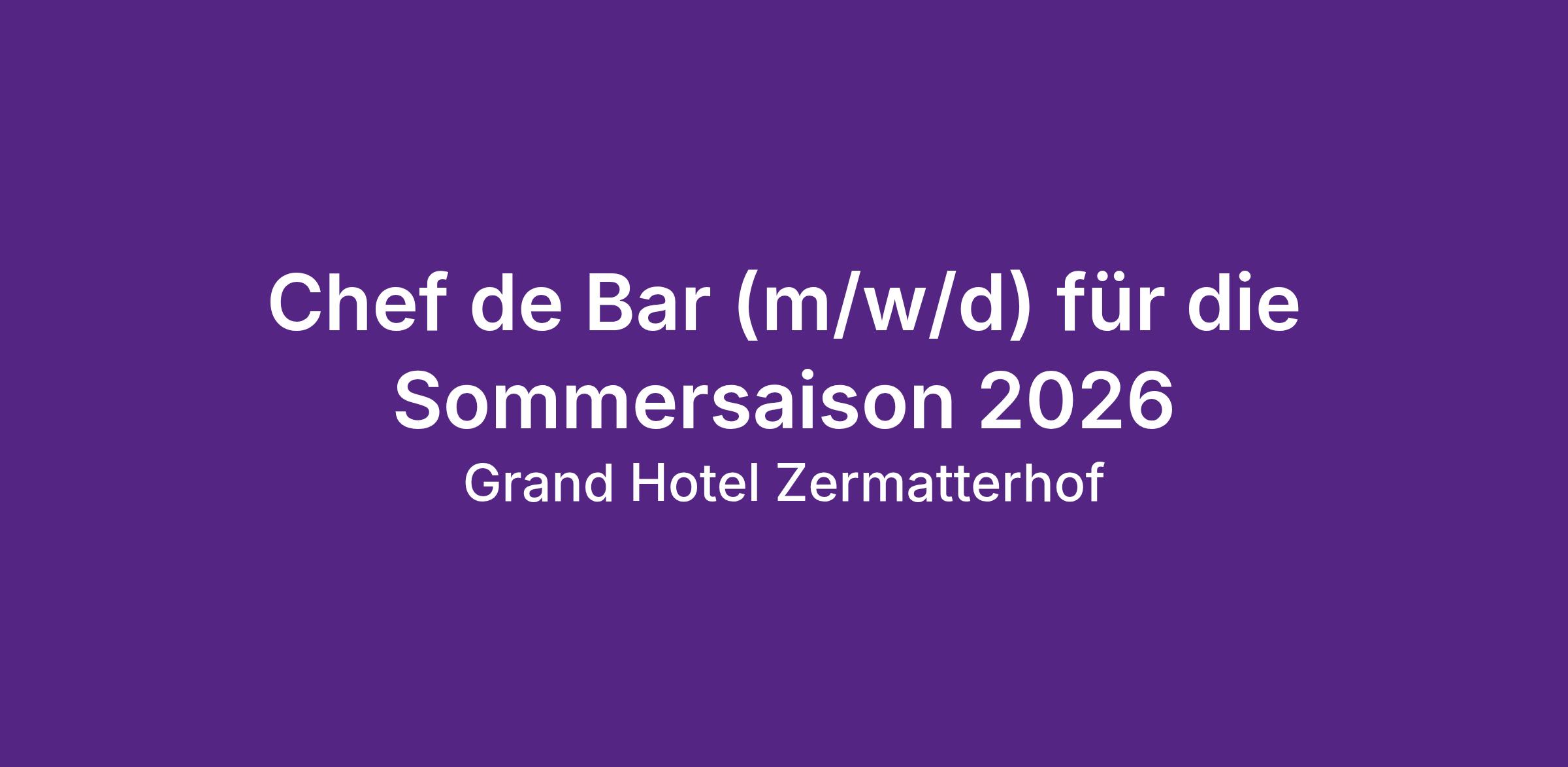 Chef de Bar (m/w/d) für die Sommersaison 2026
