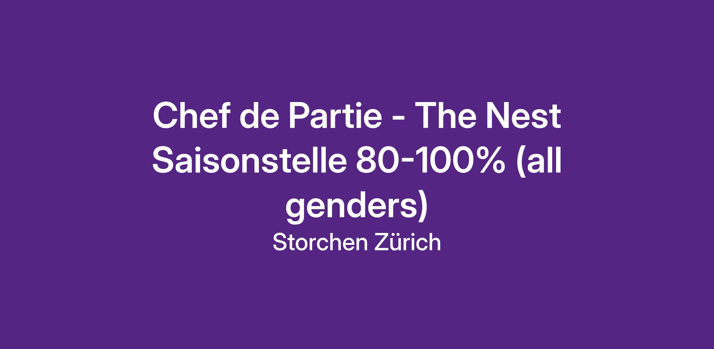 Für die Sommersaison suchen wir eine motivierte Persönlichkeit, die mit ihren kulinarischen Fähigkeiten zu einem krönenden Gästeerlebnis beiträgt. Zudem bist du flexibel, selbständig und ein echter Teamplayer. Wir suchen für unser Team in der Storchen Küche für die Rooftop-Bar The Nest einen Superheld mit Kochlöffel und Schürze!