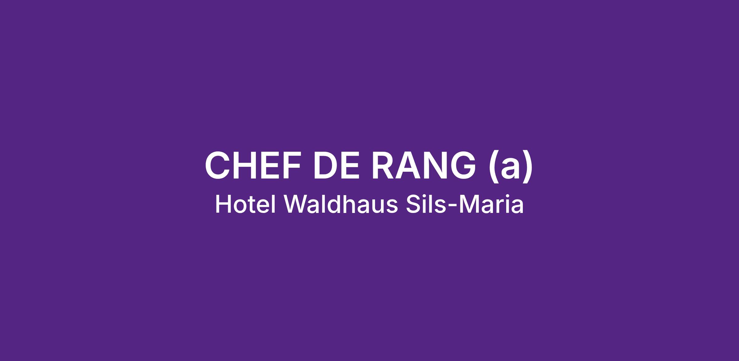Zur Verstärkung unseres Waldhaus-Teams suchen wir für die kommende Sommersaison eine motivierte Persönlichkeit als Chef de Rang (a) in Saisonanstellung mit der Möglichkeit zur Verlängerung auf die nachfolgende Saison.