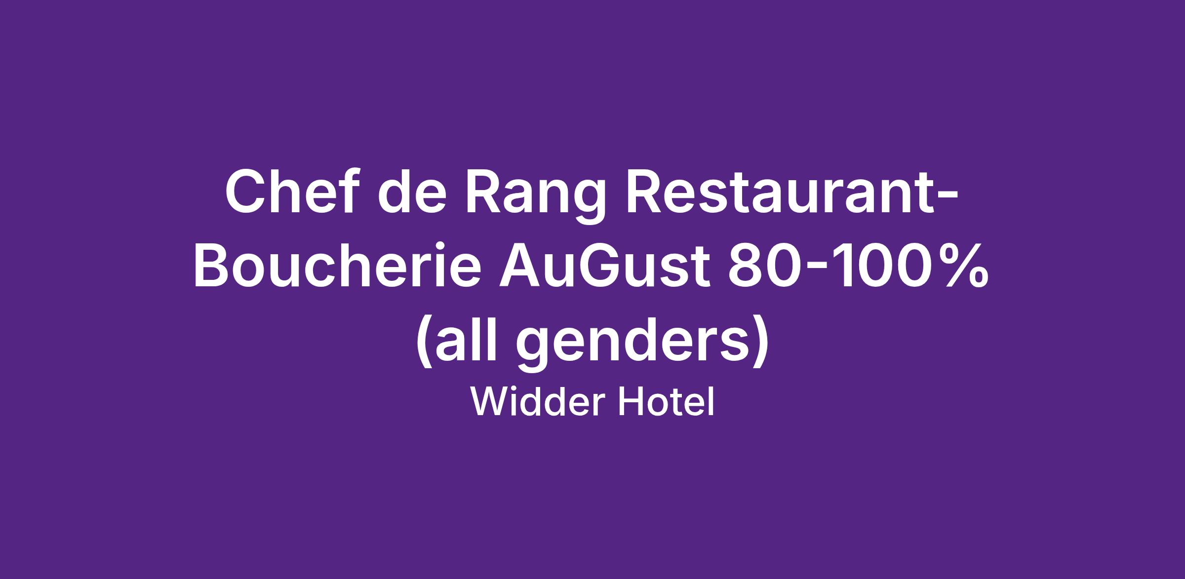 Chef de Rang Restaurant-Boucherie AuGust 80-100% (all genders)