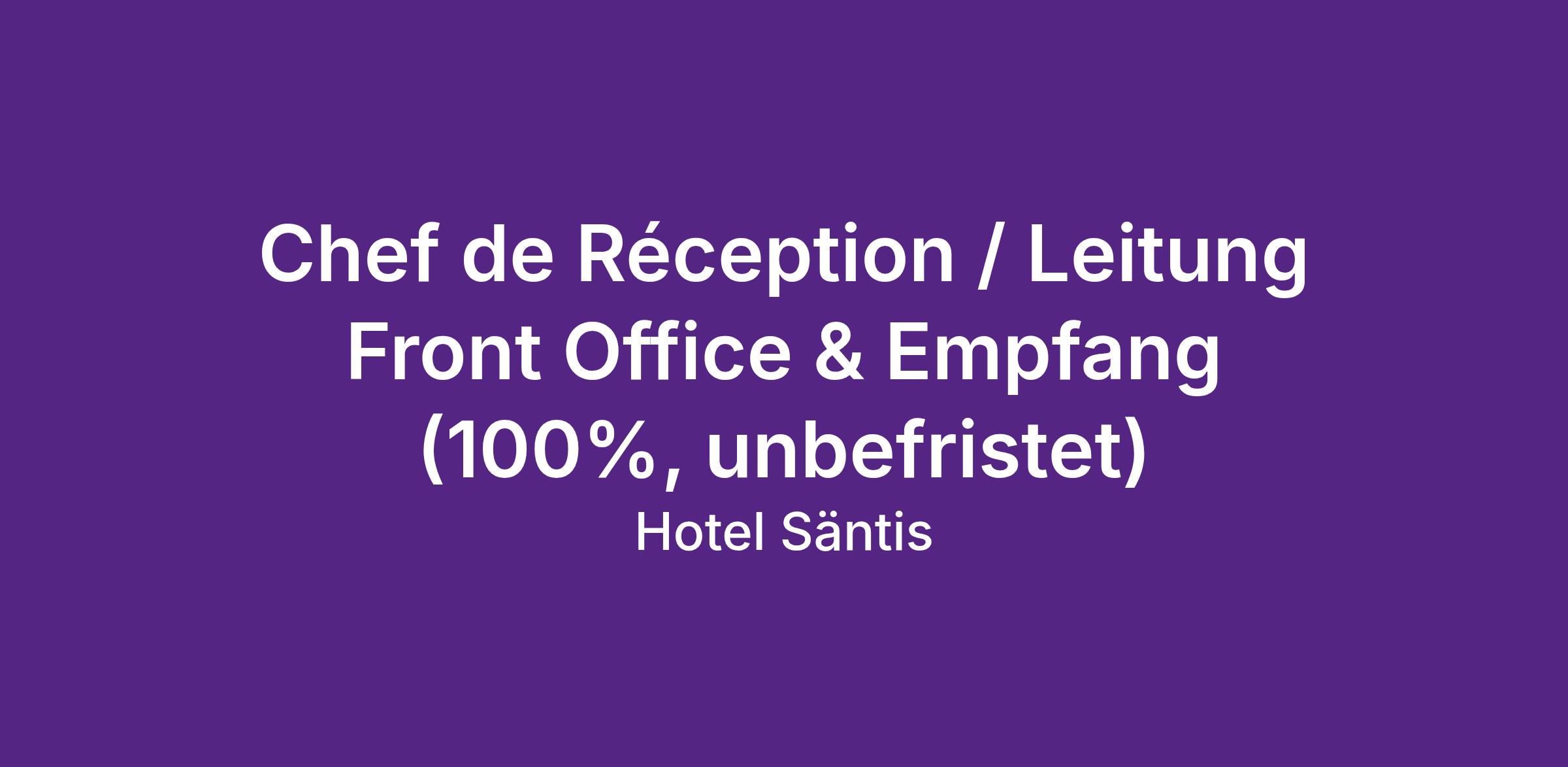 Chef de Réception / Leitung Front Office & Empfang (100%, unbefristet)