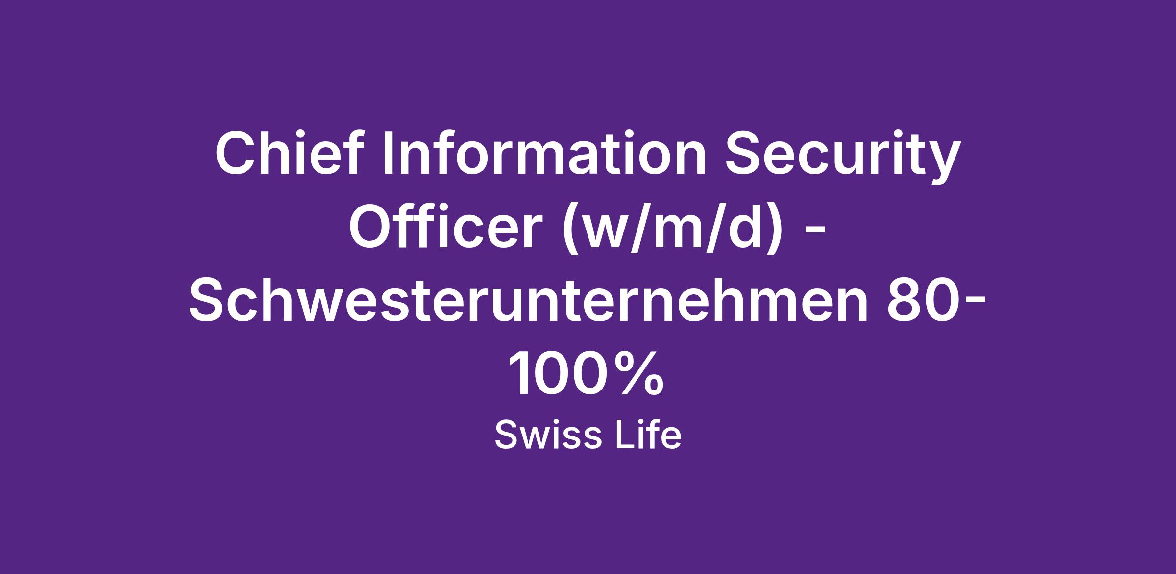 Das CISO Office verantwortet die Informations- und Cybersicherheit von Swiss Life Schweiz sowie deren Tochter- und Schwesterunternehmen. In diesem Kontext suchen wir dich als erfahrene Persönlichkeit für die Rolle als CISO der Schwestergesellschaft aXenta AG – mit dem klaren Auftrag, den Reifegrad der Informationssicherheit strategisch und operativ massgeblich mitzugestalten und weiterzuentwickeln.