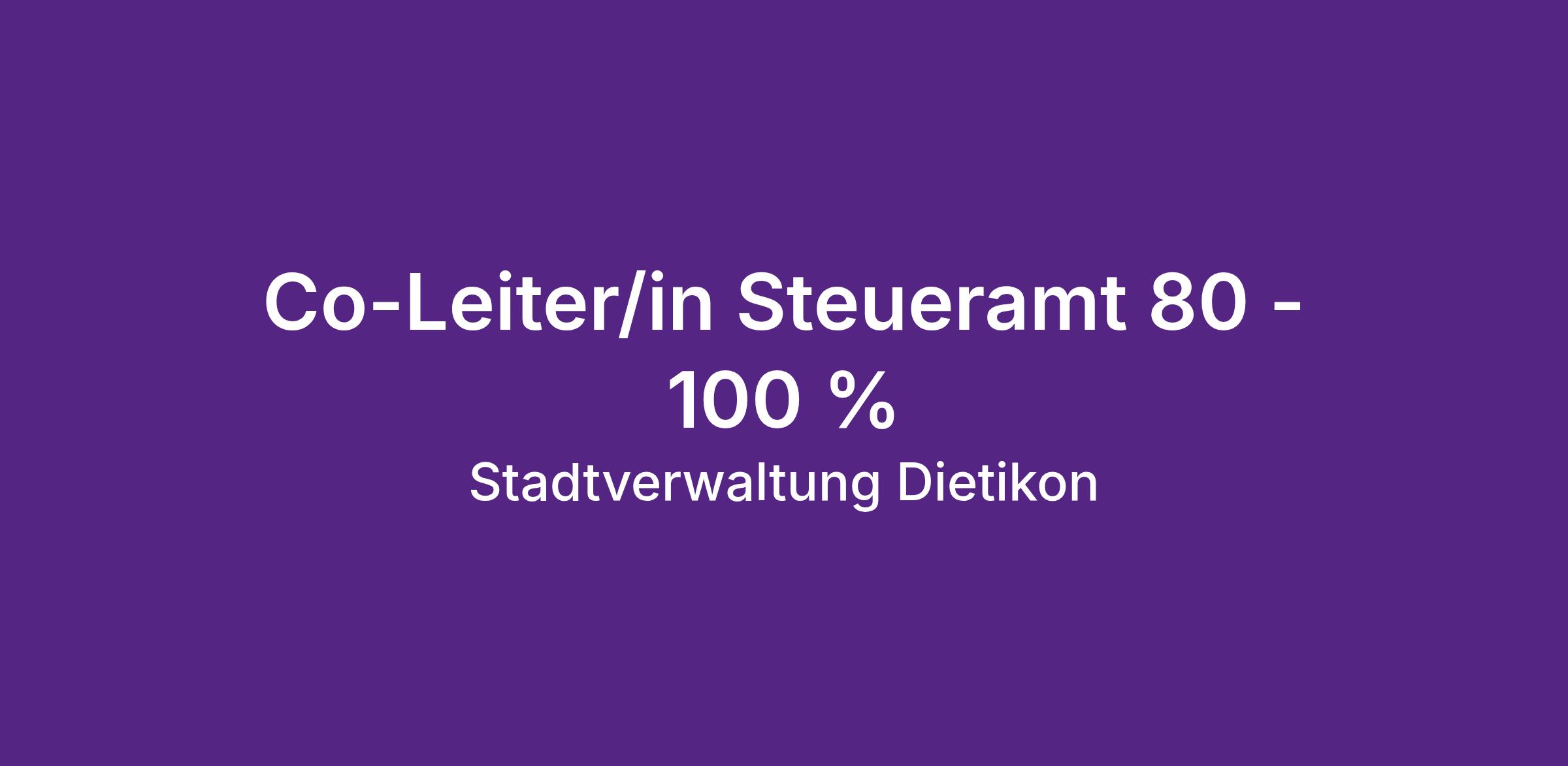 Die Stadt Dietikon ist die fünftgrösste Gemeinde im Kanton Zürich und zugleich dynamischer Bezirkshauptort im Limmattal mit rund 28'000 Einwohnerinnen und Einwohnern. Das Steueramt ein wichtiges Dienstleistungszentrum für die Bevölkerung. Mitgestalten. Verantwortung übernehmen. Zukunft prägen. Diese Begriffe prägen das Mindset des Steueramtes. Unsere Arbeitskollegin verlässt uns, daher möchten wir ihre Stelle neu besetzen.