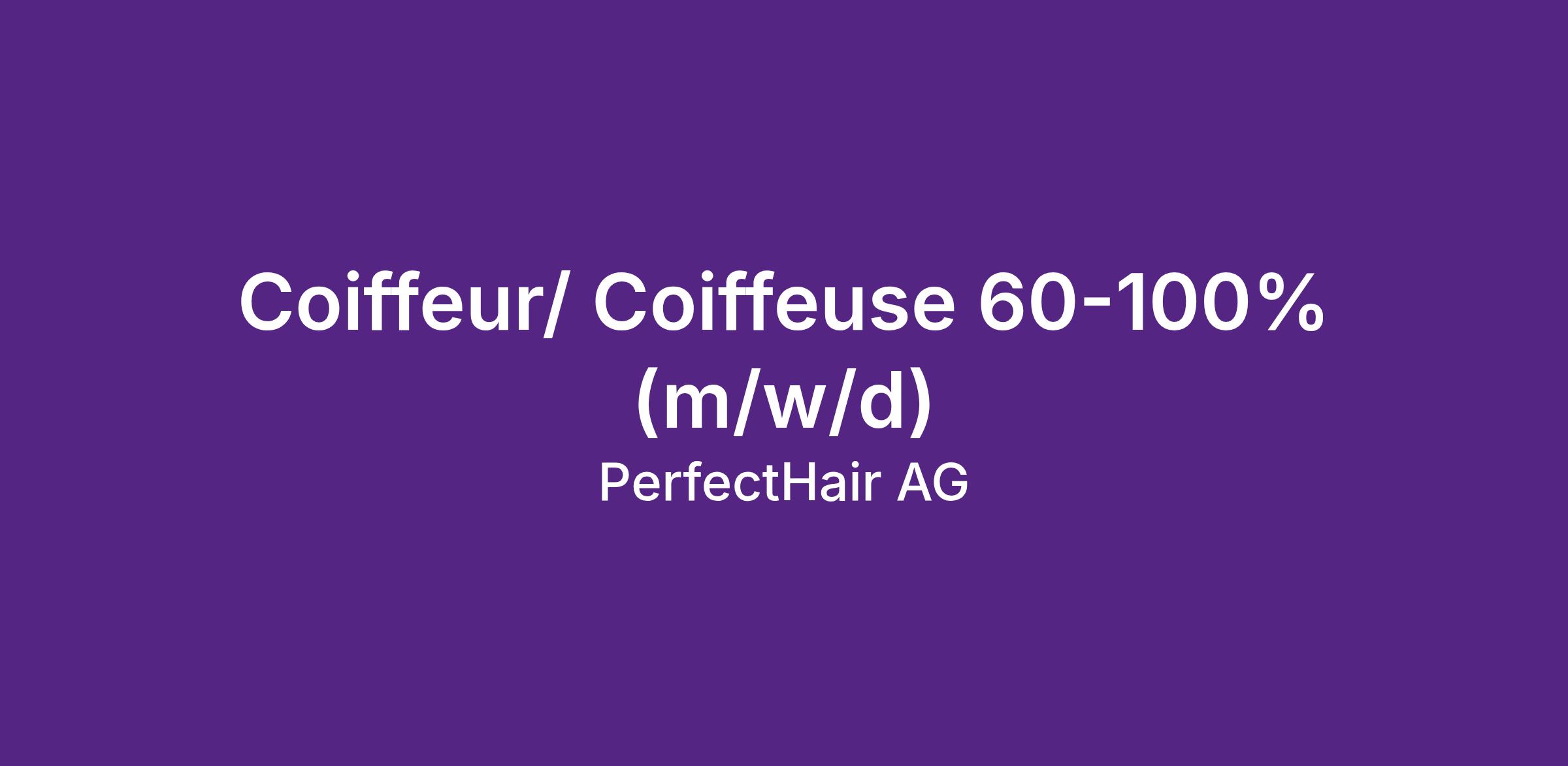 Für unsere PerfectHair.ch Filiale an der Stadthausstrasse 12, 8400 Winterthur, suchen wir per sofort oder nach Vereinbarung eine:n erfahrene:n Coiffeur/ Coiffeuse (60-100%).