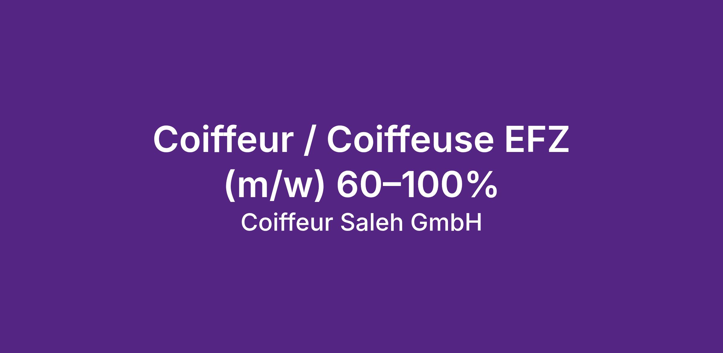 Für den modernen Coiffeur- und Barbersalon Coiffeur Saleh GmbH in Zürich (Josefstrasse) wird eine Coiffeuse oder ein Coiffeur EFZ (m/w) gesucht. Die Stelle ist per sofort oder nach Vereinbarung mit einem Pensum von 60–100% zu besetzen. Gesucht wird eine motivierte Fachperson für Damen-, Herren- und Barberdienstleistungen, die Freude an Stil, Präzision und Kundenkontakt hat.