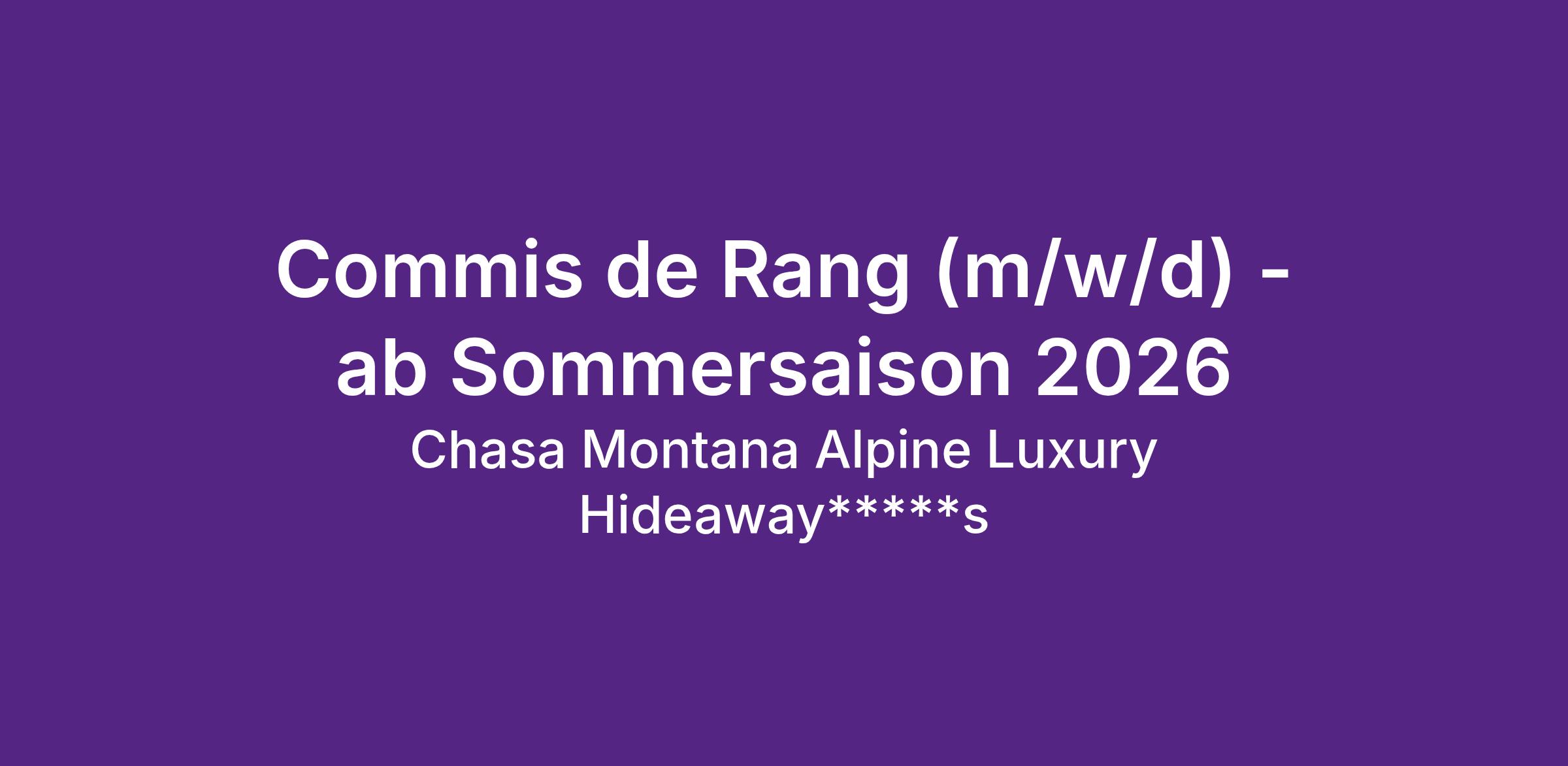 Das Chasa Montana*****s ist mehr als ein Hotel – es ist ein alpiner Rückzugsort, der alpine Gemütlichkeit mit luxuriösem Flair verbindet. Für unsere exzellenten Restaurants (darunter unser mit 17 GaultMillau-Punkten prämiertes Gourmetrestaurant sowie unsere weiteren erstklassigen Restaurants mit regionalen und internationalen Spezialitäten) suchen wir ab Mitte Juni 2026 motivierte Teamplayer, die unsere Gäste begeistern möchten.