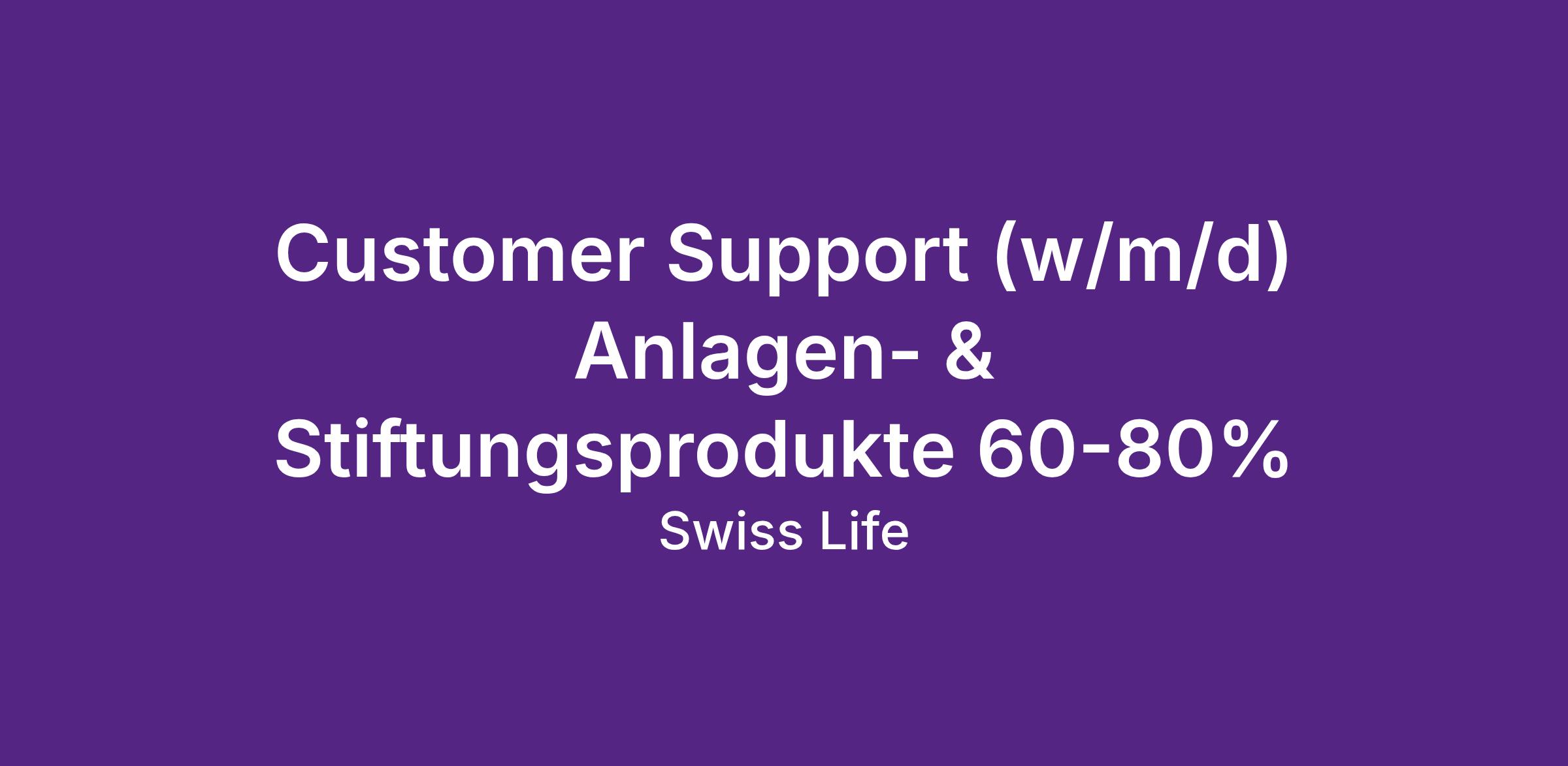 Das Service Center ist die Anlaufstelle für Kundinnen und Kunden von Anlagen- & Stiftungsprodukte sowie für Kundenberatende der Swiss Life. Gemeinsam mit dem Team stellst du die Erreichbarkeit gegenüber Kundinnen und Kunden sowie Beratenden zu den Öffnungszeiten sicher