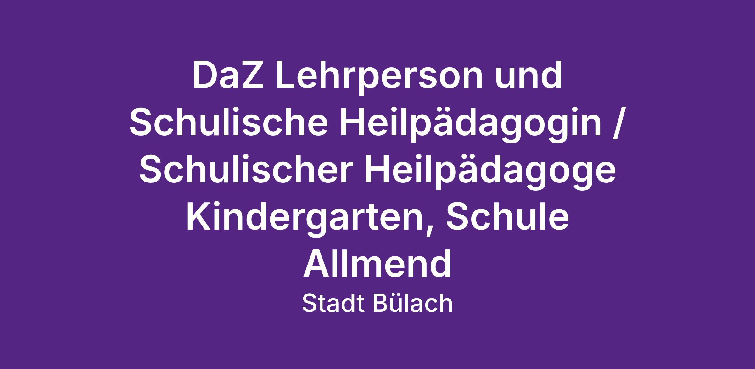 DaZ Lehrperson und Schulische Heilpädagogin / Schulischer Heilpädagoge Kindergarten, Schule Allmend