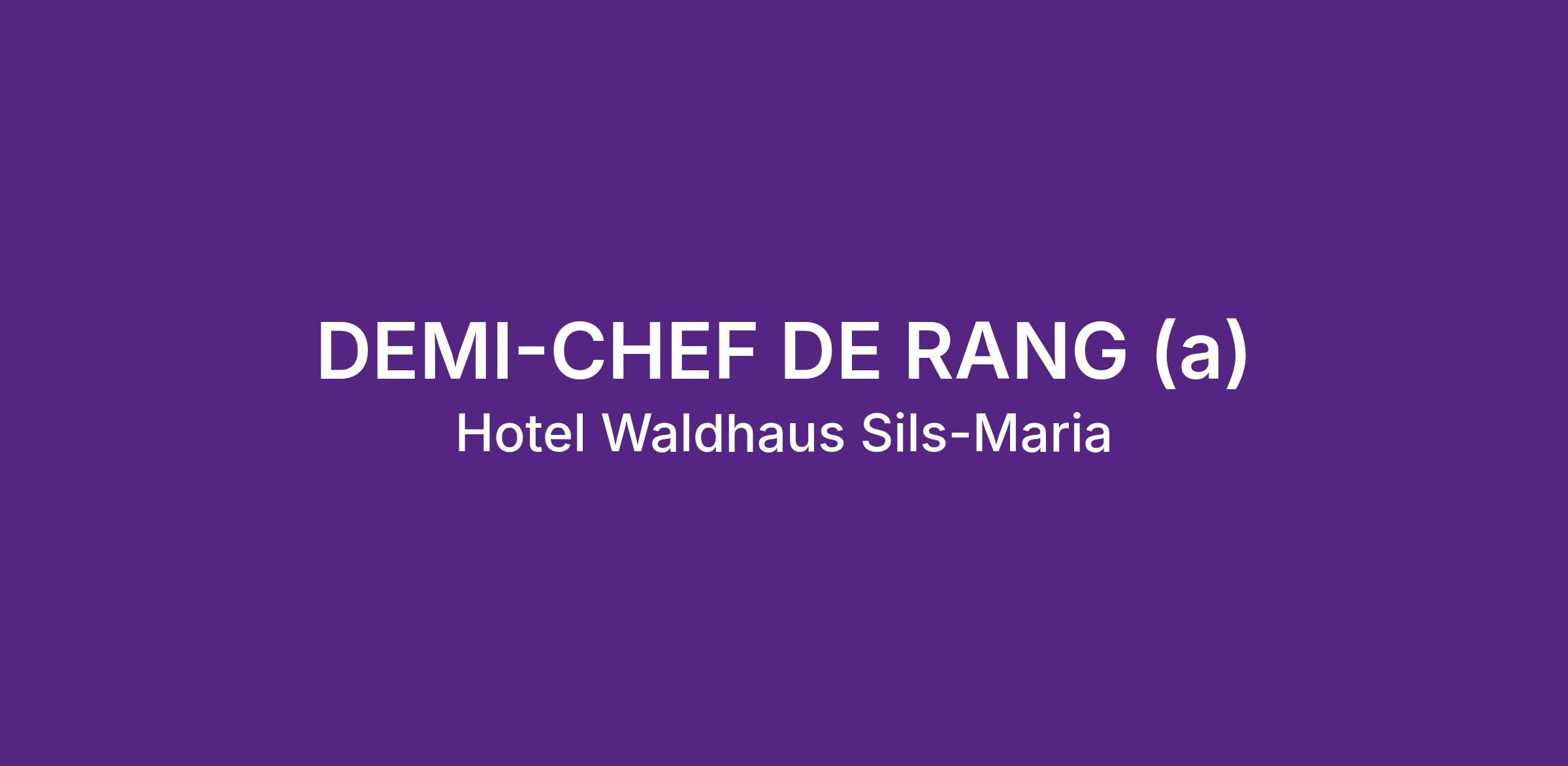 Zur Verstärkung unseres Waldhaus-Teams suchen wir für die Sommersaison 2026 eine motivierte Persönlichkeit als Demi-Chef de Rang (a) in Saisonanstellung – mit Möglichkeit zur Verlängerung auf die nachfolgende Saison.