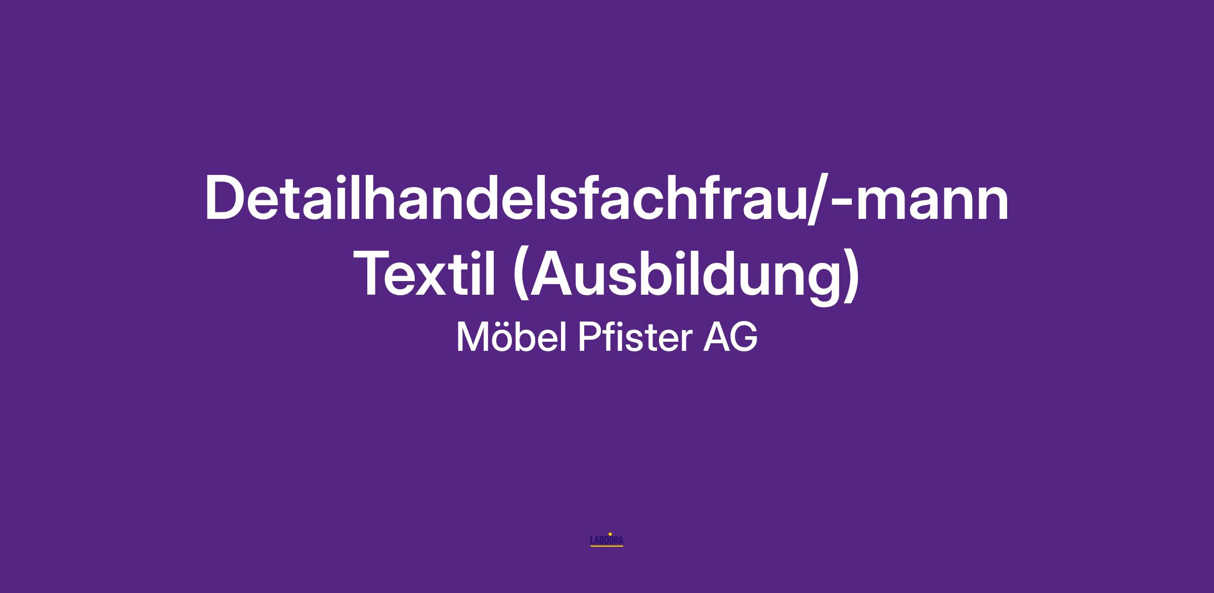 Wir bei pfister verfolgen eine Vision: Wir möchten mit unseren Produkten in jedes Schweizer Zuhause einziehen. Dafür suchen wir tatkräftige Unterstützung. Hilf uns, die rund 100'000 Produkte unseres Sortiments ins Zuhause unserer Kundinnen und Kunden zu bringen. Ob in einer der 18 Filialen oder in der Zentrale in Suhr: Dich erwartet ein einmaliges Umfeld, die Arbeit mit ansprechenden Produkten und nicht zuletzt Wertschätzung und Respekt für deinen Einsatz. Bei pfister arbeiten heute schon rund 1'400 Personen - kommst du bald dazu?