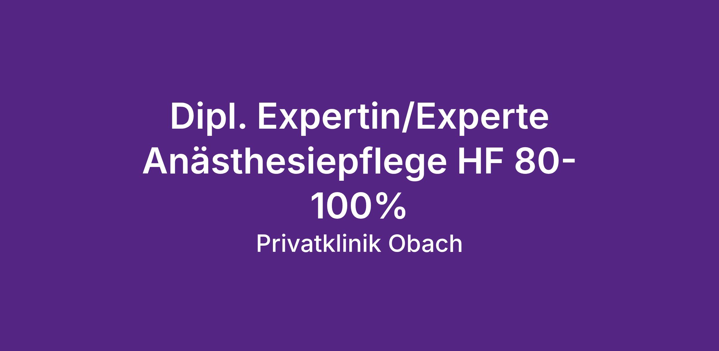 Die Privatklinik Obach sucht nach Vereinbarung eine engagierte Expertin / einen Experten Anästhesiepflege HF im Pensum von 80-100%.