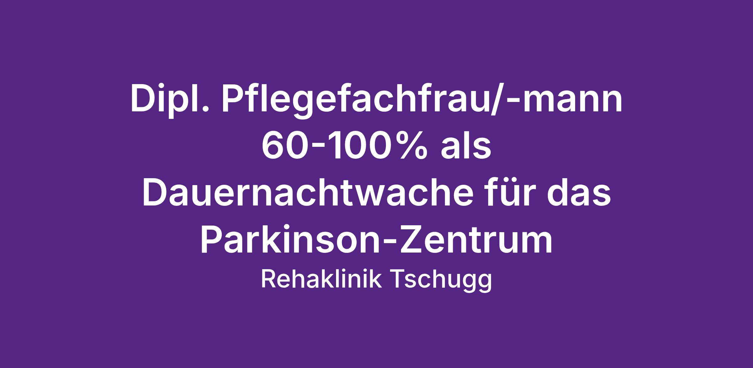 Zur Ergänzung unseres Teams suchen wir per sofort oder nach Vereinbarung eine/n Dipl. Pflegefachfrau/-mann 60-100% als Dauernachtwache für das Parkinson-Zentrum Arbeitsort: Rehaklinik TschuggWo dein