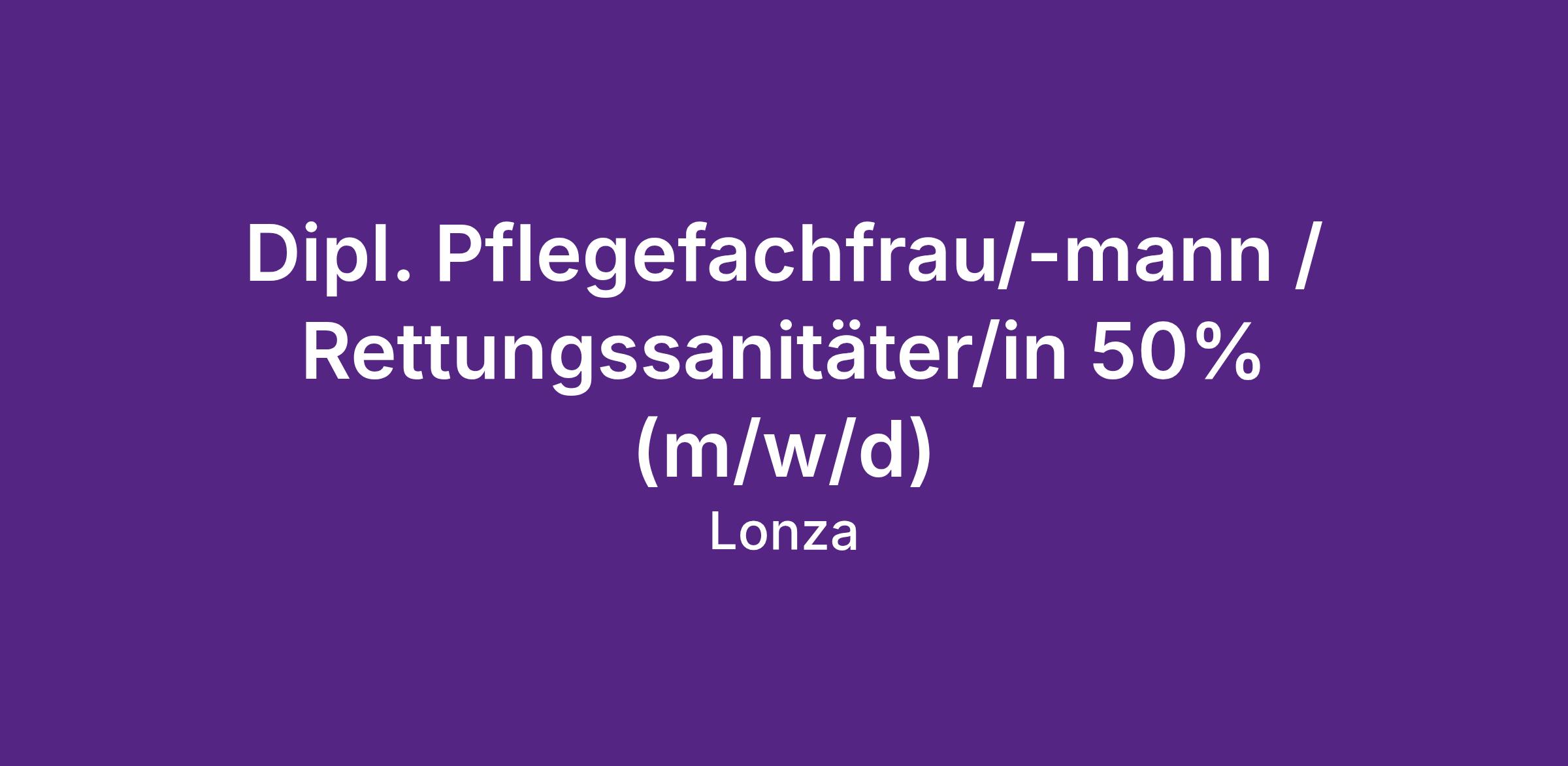 Dipl. Rettungssanitäter/in (m/w/d). In dieser Position sind Sie zuständig für die Sicherstellung der medizinischen Versorgung und Betreuung der Mitarbeitenden im Werk Visp in einem Team aus Pflegenden und Werksärzten.