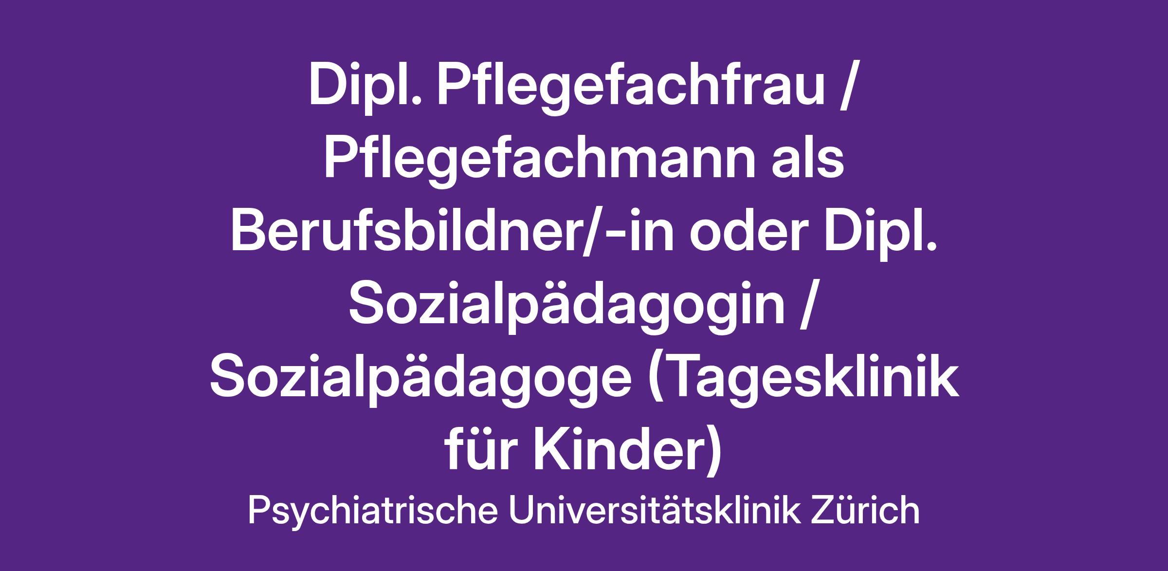 Für die Tagesklinik für Kinder im Alter von 5 bis 15 Jahren im Zentrum von Zürich suchen wir ab 1. Februar 2026 oder nach Vereinbarung eine/einen