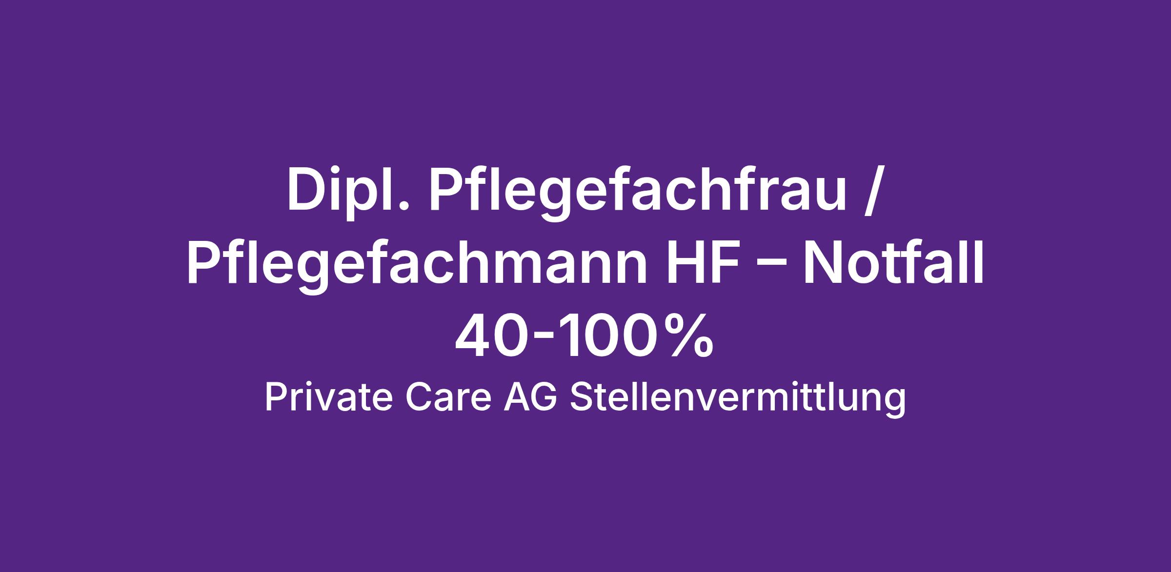 Für unseren Kunden suchen wir per sofort oder nach Vereinbarung eine/-n pflichtbewusste/-n und empathische/-n Dipl. Pflegefachfrau/-mann HF im Notfall 40-100%