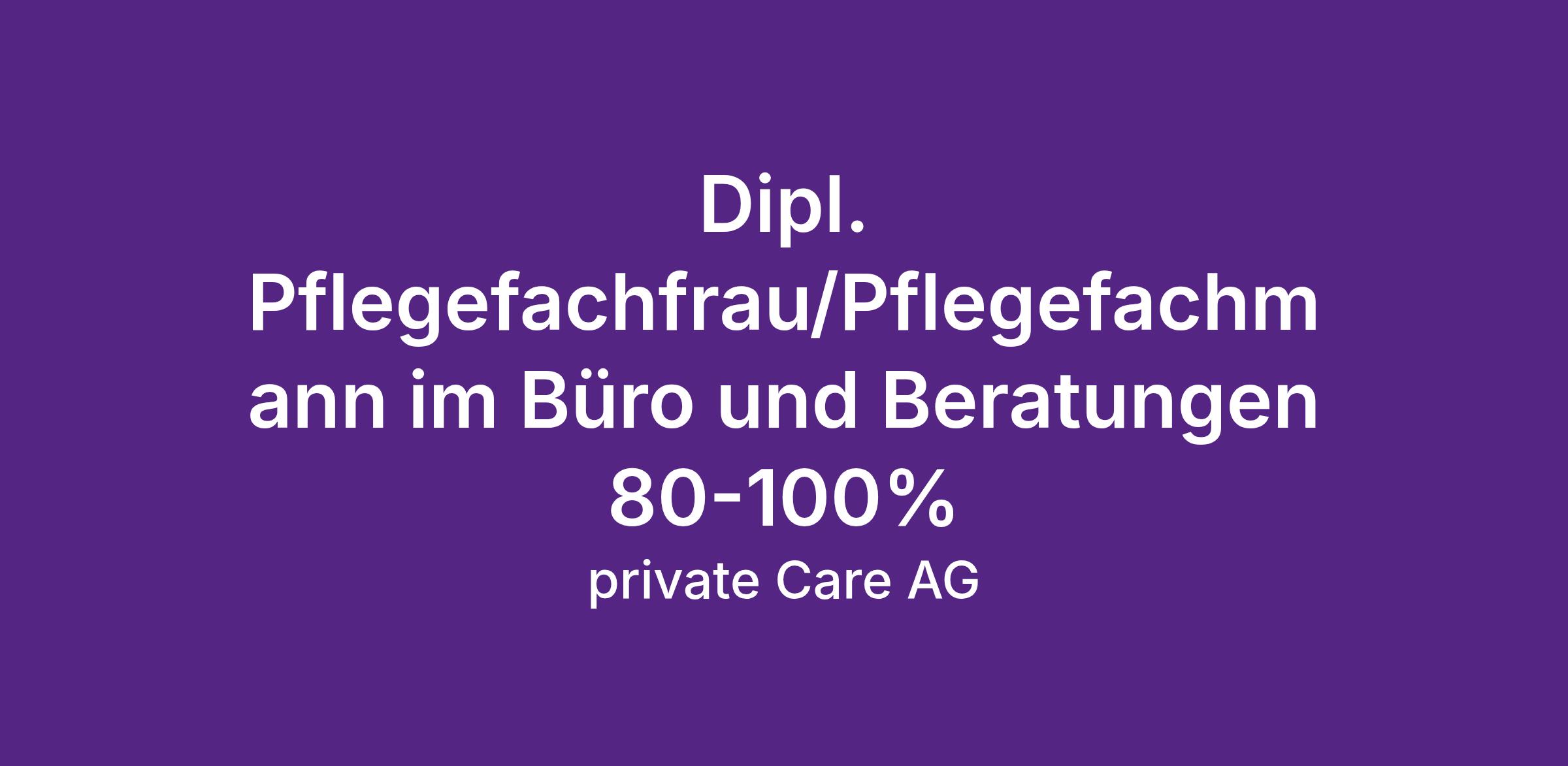 Die Private Care AG ist ein dynamisches, zukunftsorientiertes Unternehmen, welches private Pflegedienstleistungen in den Kantonen Aargau, Zürich, St. Gallen, Solothurn und Schaffhausen anbietet sowie spezialisierte Fachkräfte aus Pflege und Gesundheitswesen in der deutschsprachigen Schweiz vermittelt.