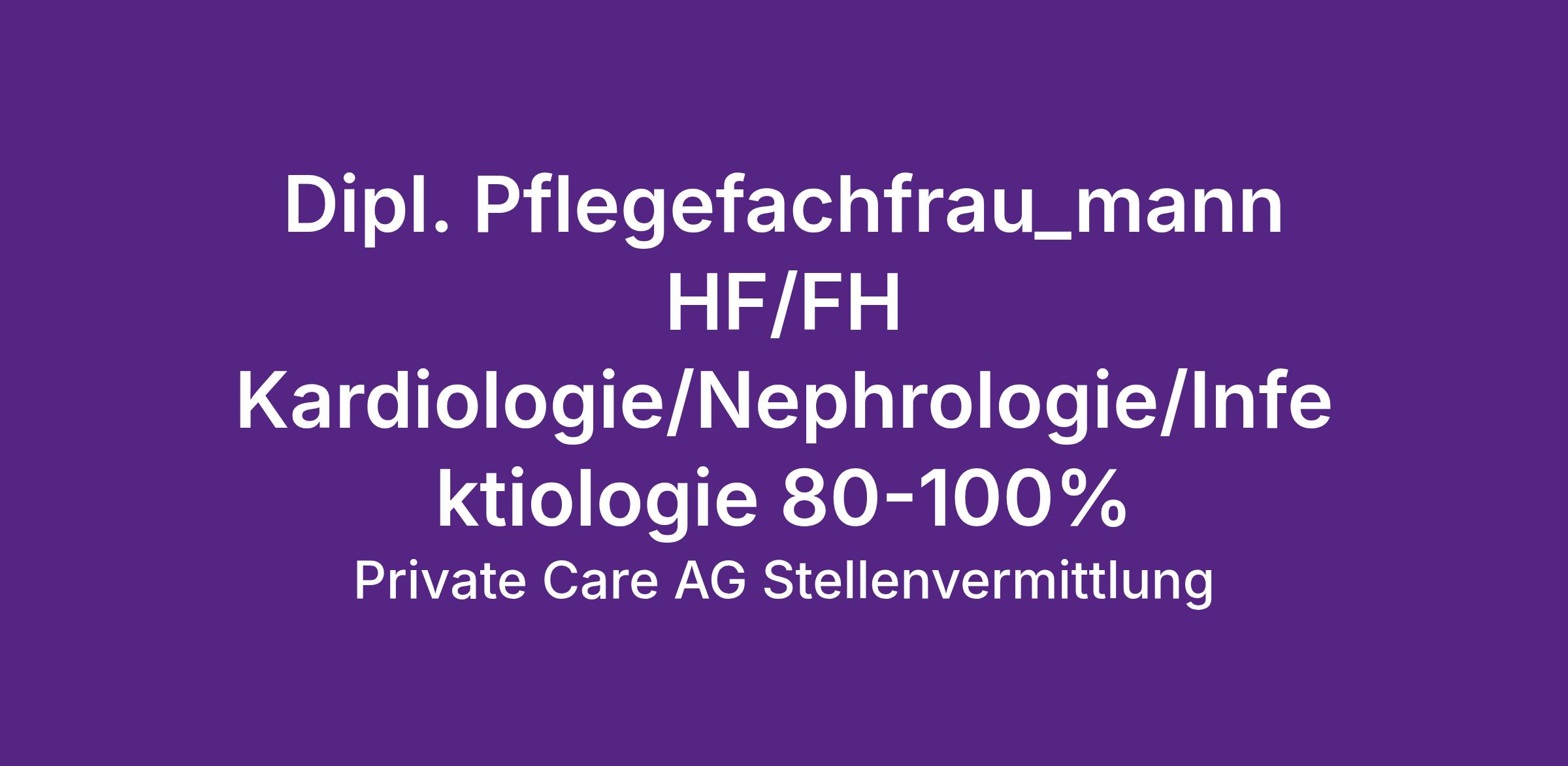 Für unseren Kunden suchen wir per sofort oder nach Vereinbarung eine Dipl. Pflegefachperson für Kardiologie/Nephrologie/Infektiologie.