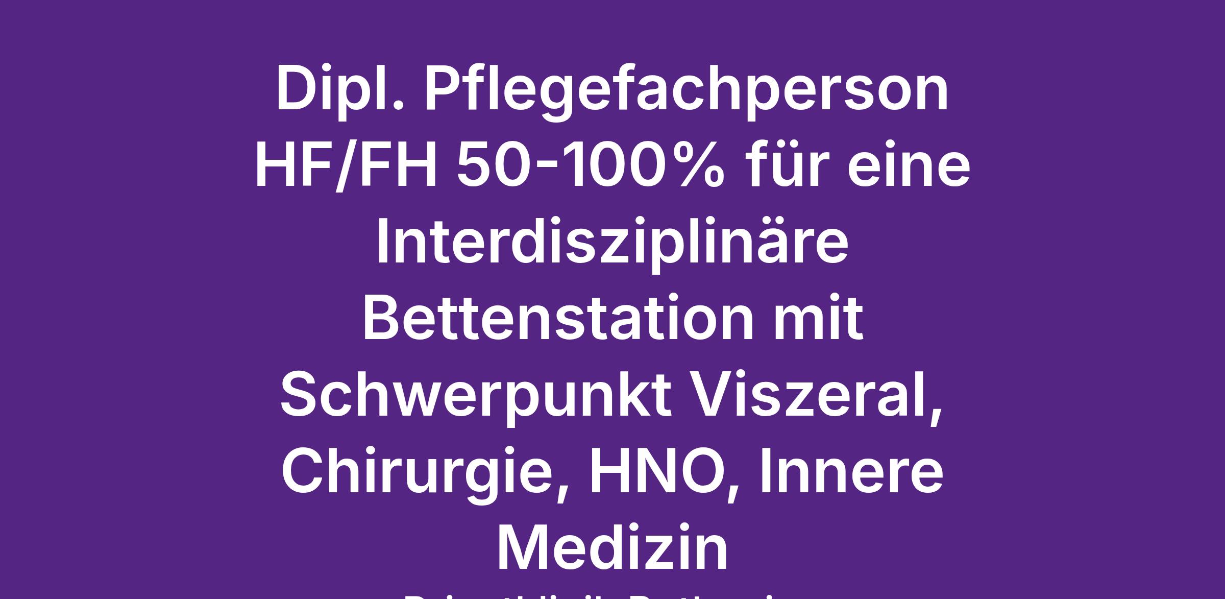 Unsere interdisziplinäre Bettenstation vereint die Fachbereiche Viszeralchirurgie, Hals-Nasen-Ohren-Heilkunde (HNO) sowie Innere Medizin. Sie bietet ein spannendes, abwechslungsreiches und anspruchsvolles Arbeitsumfeld mit einem breiten Patientenspektrum. Der interprofessionelle Austausch mit verschiedenen Berufsgruppen steht bei uns im Zentrum einer qualitativ hochwertigen Patientenversorgung.
