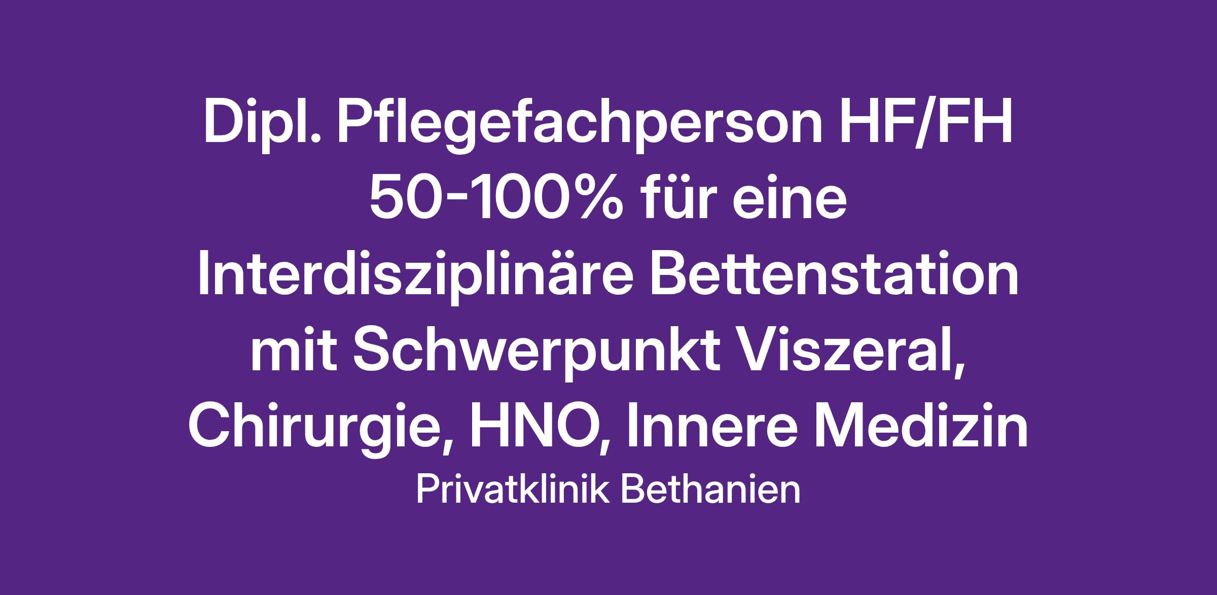 Unsere interdisziplinäre Bettenstation vereint die Fachbereiche Viszeralchirurgie, Hals-Nasen-Ohren-Heilkunde (HNO) sowie Innere Medizin. Sie bietet ein spannendes, abwechslungsreiches und anspruchsvolles Arbeitsumfeld mit einem breiten Patientenspektrum. Der interprofessionelle Austausch mit verschiedenen Berufsgruppen steht bei uns im Zentrum einer qualitativ hochwertigen Patientenversorgung.