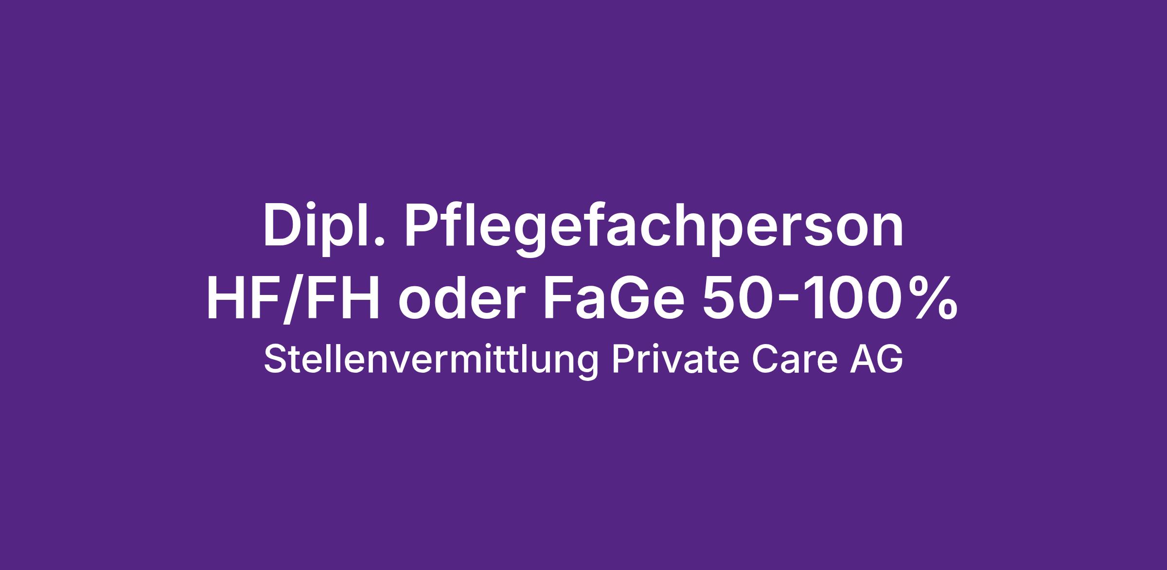 Die Private Care AG ist ein dynamisches, zukunftsorientiertes Unternehmen, welches private Pflegedienstleistungen in den Kantonen Aargau, Zürich, St. Gallen, Zug, Schwyz, Solothurn und Schaffhausen anbietet sowie spezialisierte Fachkräfte aus Pflege und Gesundheitswesen in der deutschsprachigen Schweiz vermittelt.