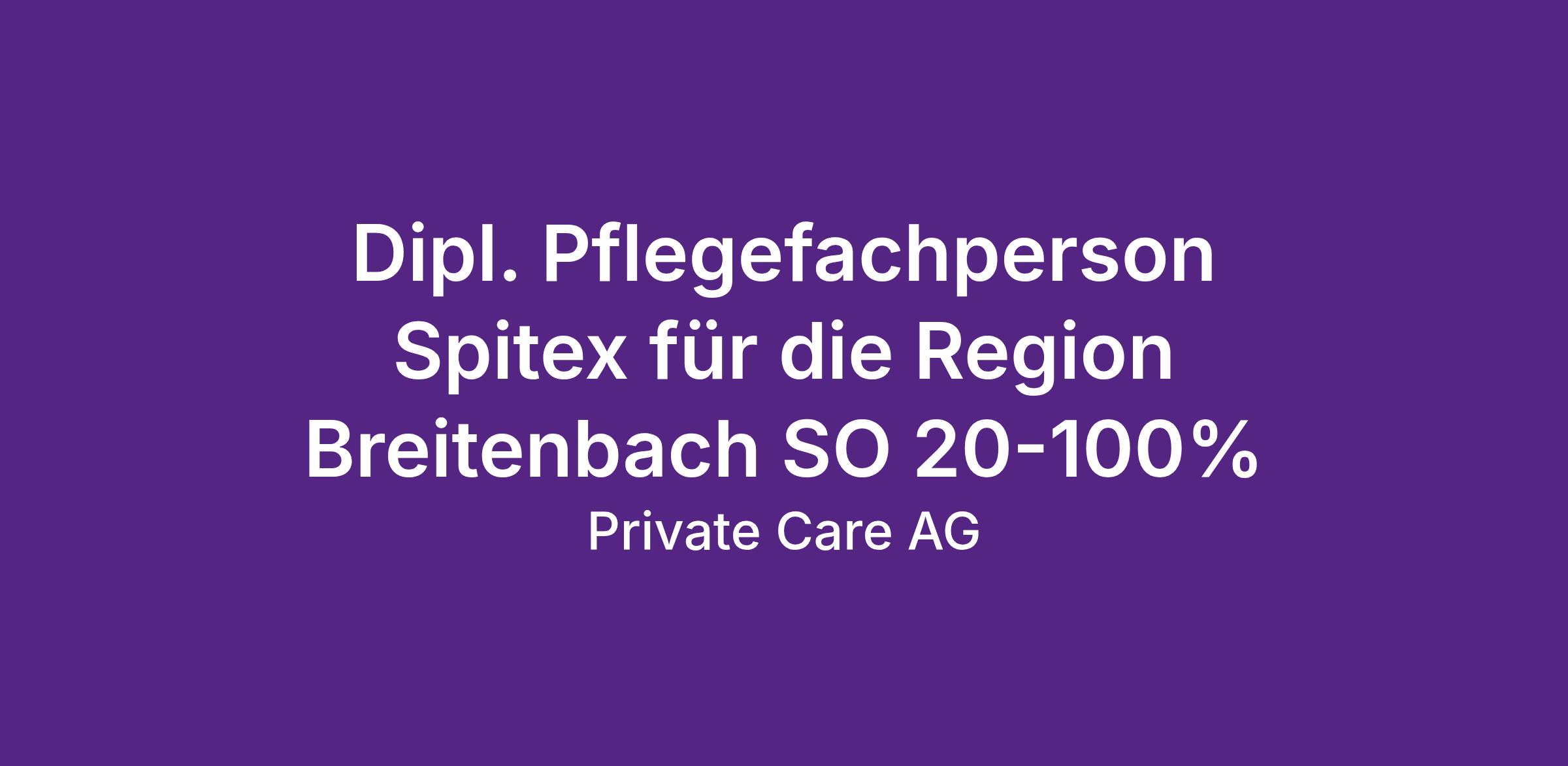 Zur Erweiterung unseres Pflegeteams im Kanton Solothurn, suchen wir für die Region Breitenbach SO eine pflichtbewusste und empathische Dipl. Pflegefachperson 20-100%.