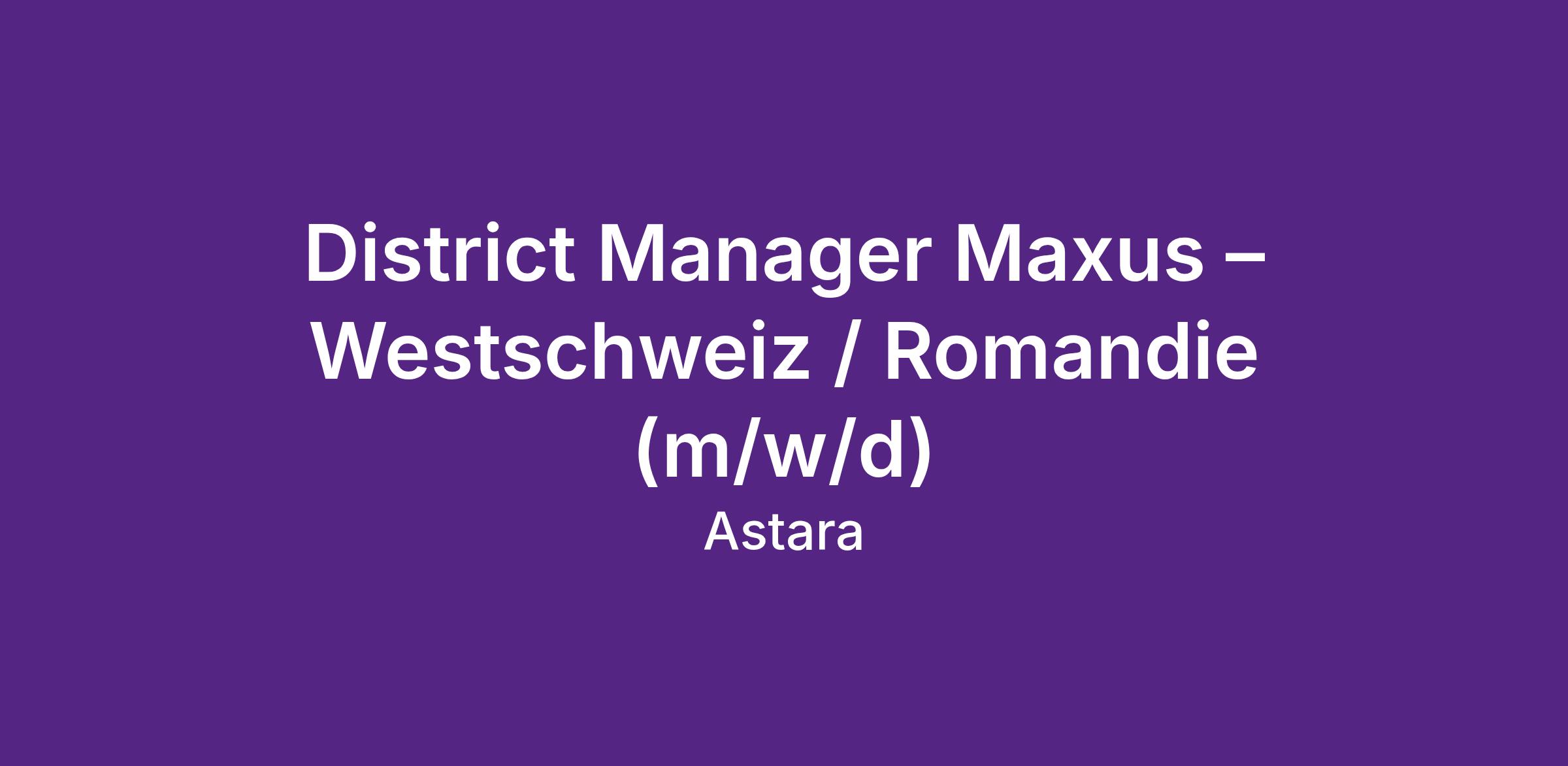 Maxus gehört zu den dynamischsten und am schnellsten wachsenden Marken im Portfolio von Astara. Um unsere Expansion weiter voranzutreiben und neue Marktpotenziale zu erschliessen, suchen wir dich als District Manager, Maxus für die Westschweiz, der Lust hat, eine junge Marke aktiv mitzugestalten.